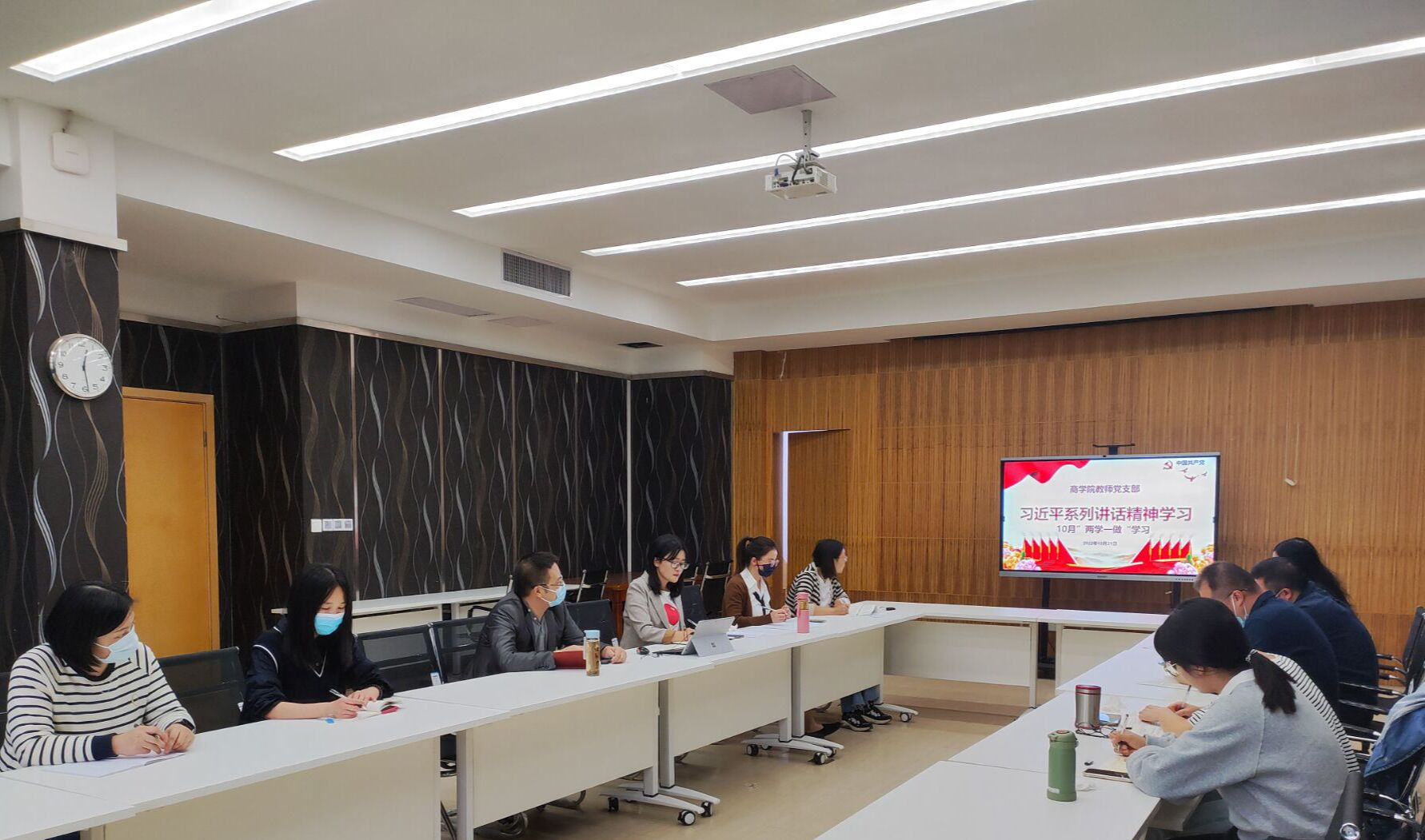 本网讯(通讯员 张陈蕊 郭若艺)10月21日下午,商学院教师党支部召开理论学习会议,专题学习研讨党的二十大精神。学院教师党支部全体党员参加了学习研讨,会议由支部书记郭若艺主持。