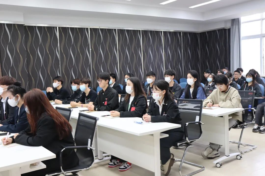 校学生会邓龙辉同学与商学院学生会组织交流想法,提出学生会组织应当聚焦主责主业,践行服务宗旨,持续深化改革的建议并对大会召开表示热烈祝贺。
