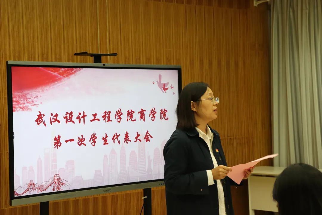 商学院党总支书记胡紫玲老师致辞,对学生会过去的工作给予了肯定,希望新一届学生会能在学校和学院的党组织领导和分团委的指导下继承优良传统、开创未来。