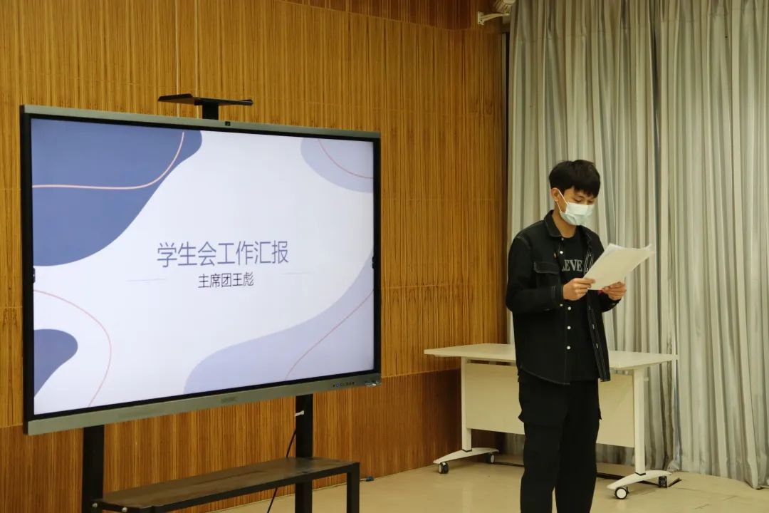 主席团成员王彪总结上一年学生会工作成果并介绍主席团候选人基本情况。全体代表认证听取并审议学生会工作报告,通过差额选举产生新一届商学院学生会主席团成员。新一届主席团成员对接下来的一年商学院学生会的发展表示憧憬并表明学习、继承上一届的优良传统。