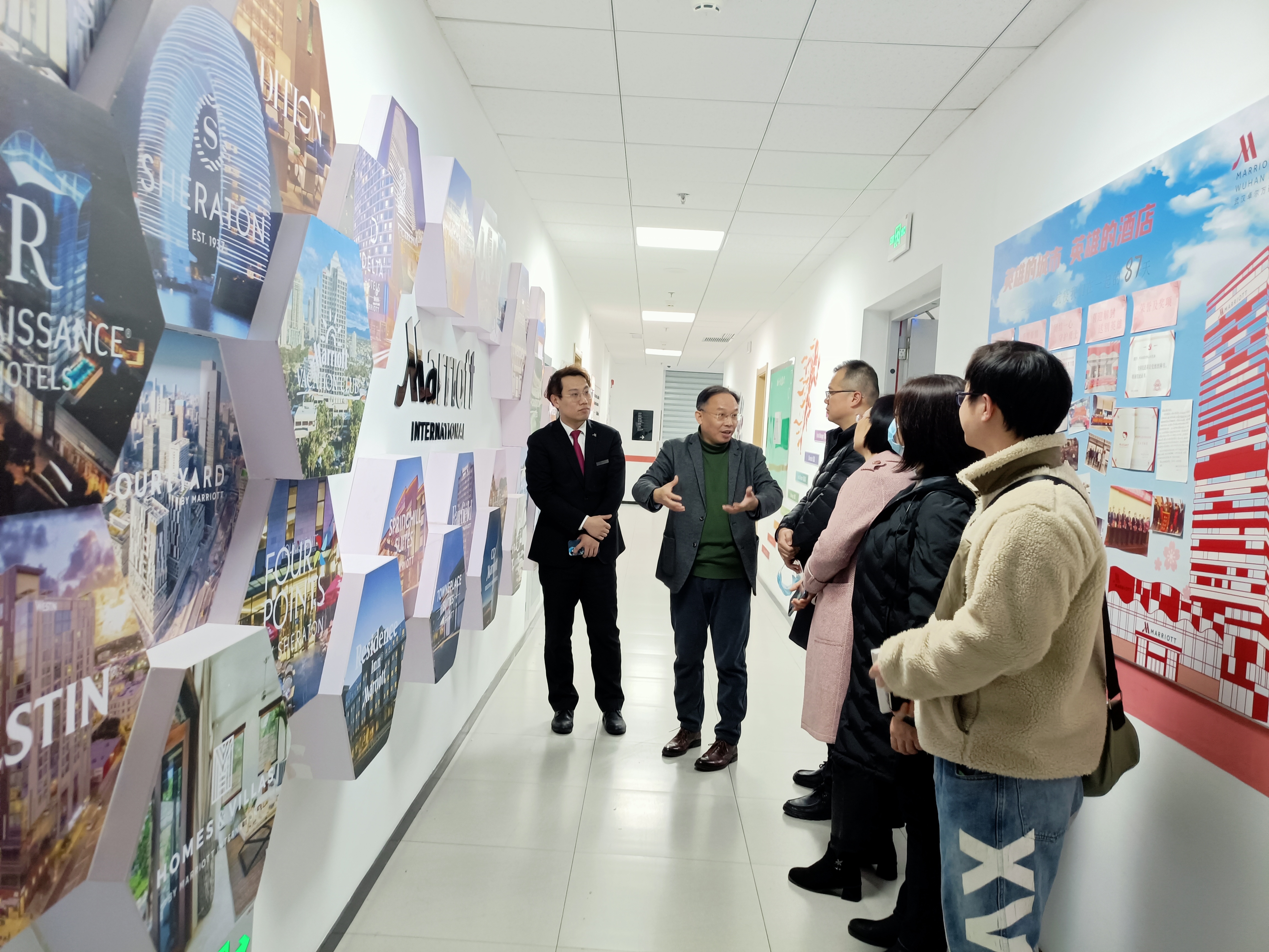 (本网讯 通讯员 廖翔)为进一步加强校外实习实训基地建设,深化产学研合作交流,提高实习质量和应用型永利集团质量。2月10日,商学院院长张亮、党总支书记胡紫玲、商务英语系主任李卉琼﹑旅游管理与服务教育教研室主任张陈蕊及学院就业专员廖翔一行赴武汉卓尔万豪酒店开展调研交流,得到了卓尔集团校企合作部领导热情接待。
