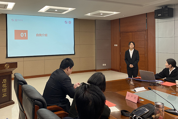 第二届“石花酒业菁英”共建班学员、商学院2019级市场营销专业张静静同学汇报学习工作情况