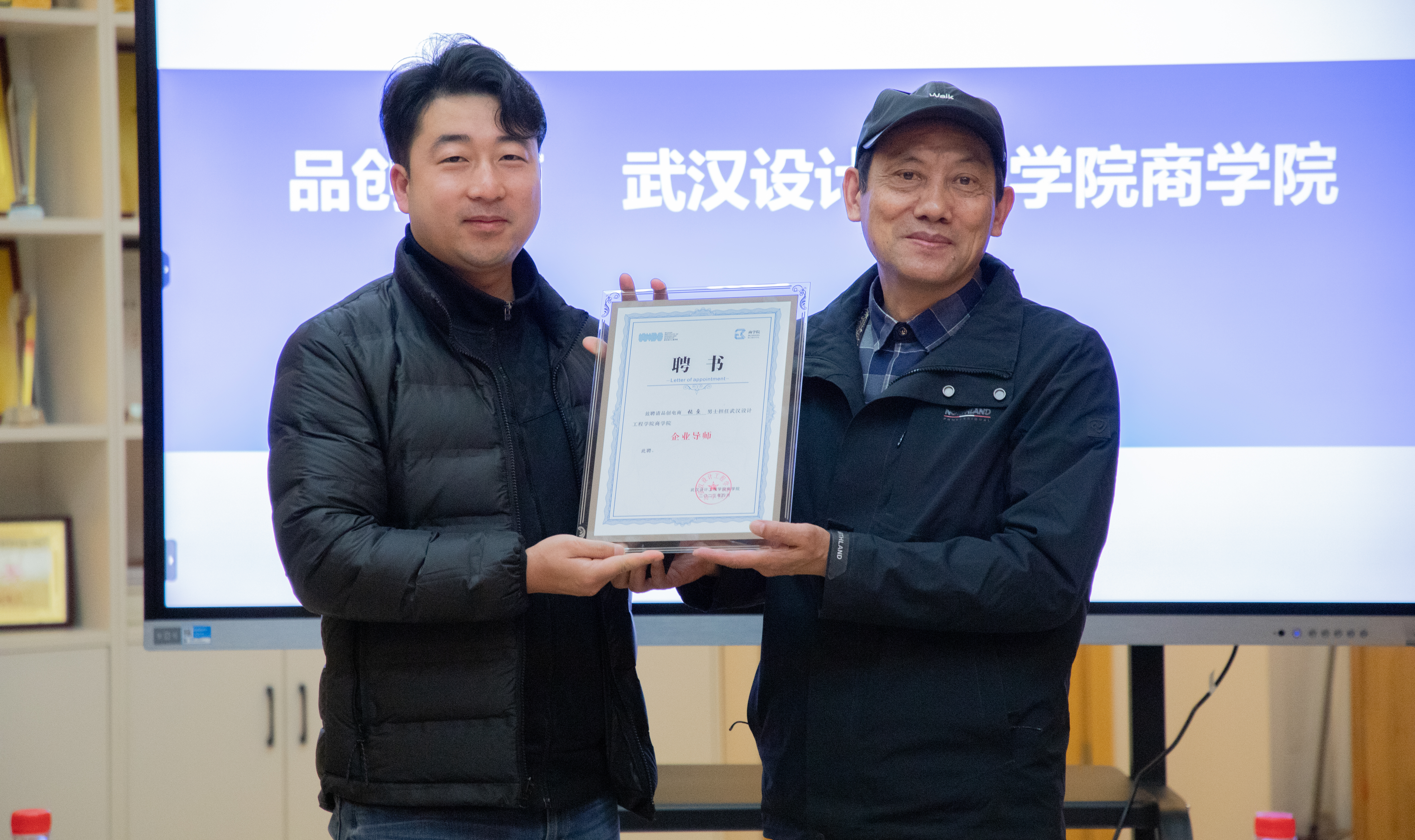 商学院与品创电商进行了校企合作协议签约仪式,湛柏明现场为企业导师颁发聘书。