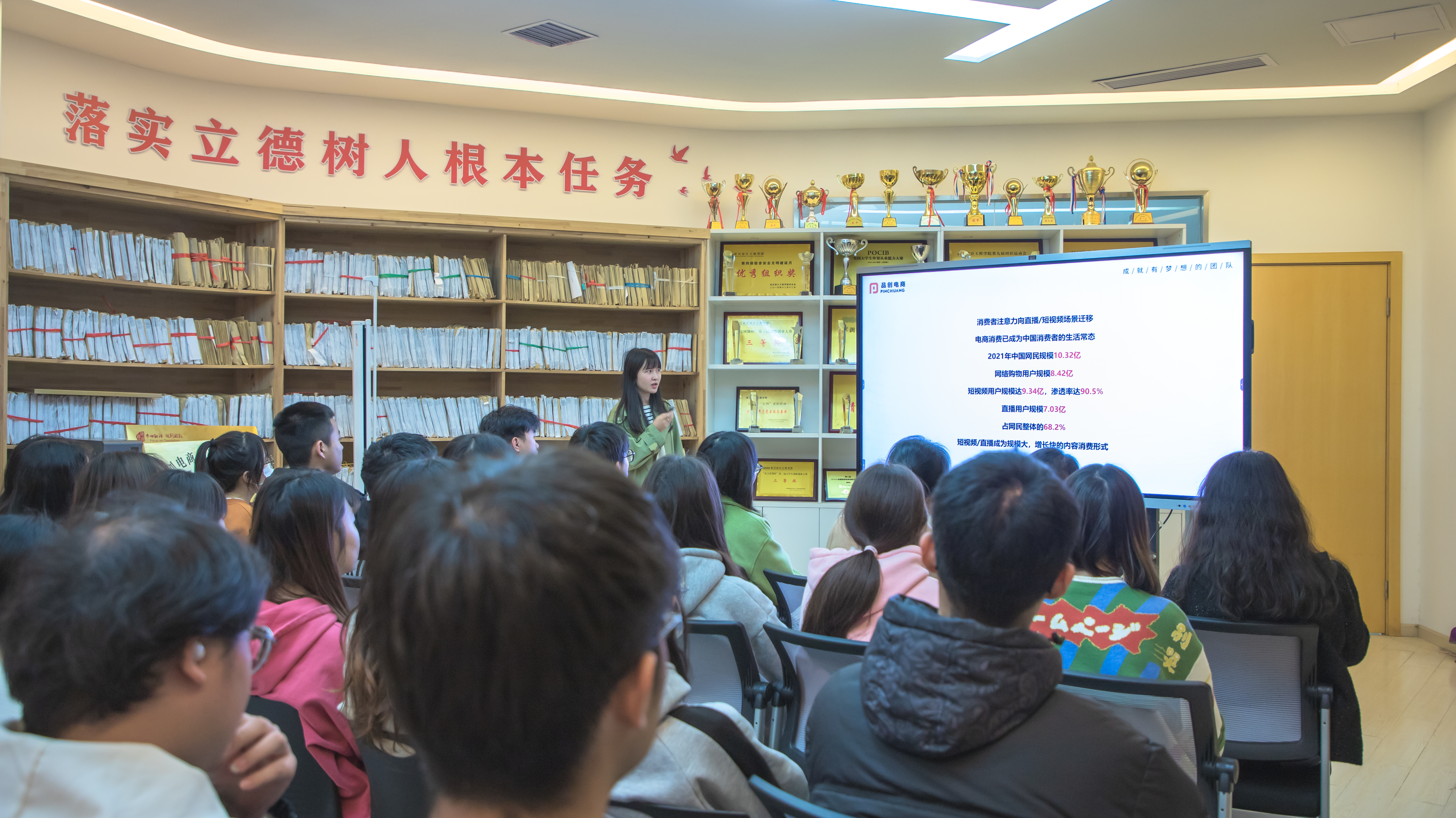 签约仪式结束后,品创电商直播平台负责人张芷沁为我院师生带来了一场“浅析直播带货未来发展”的沙龙讲座。