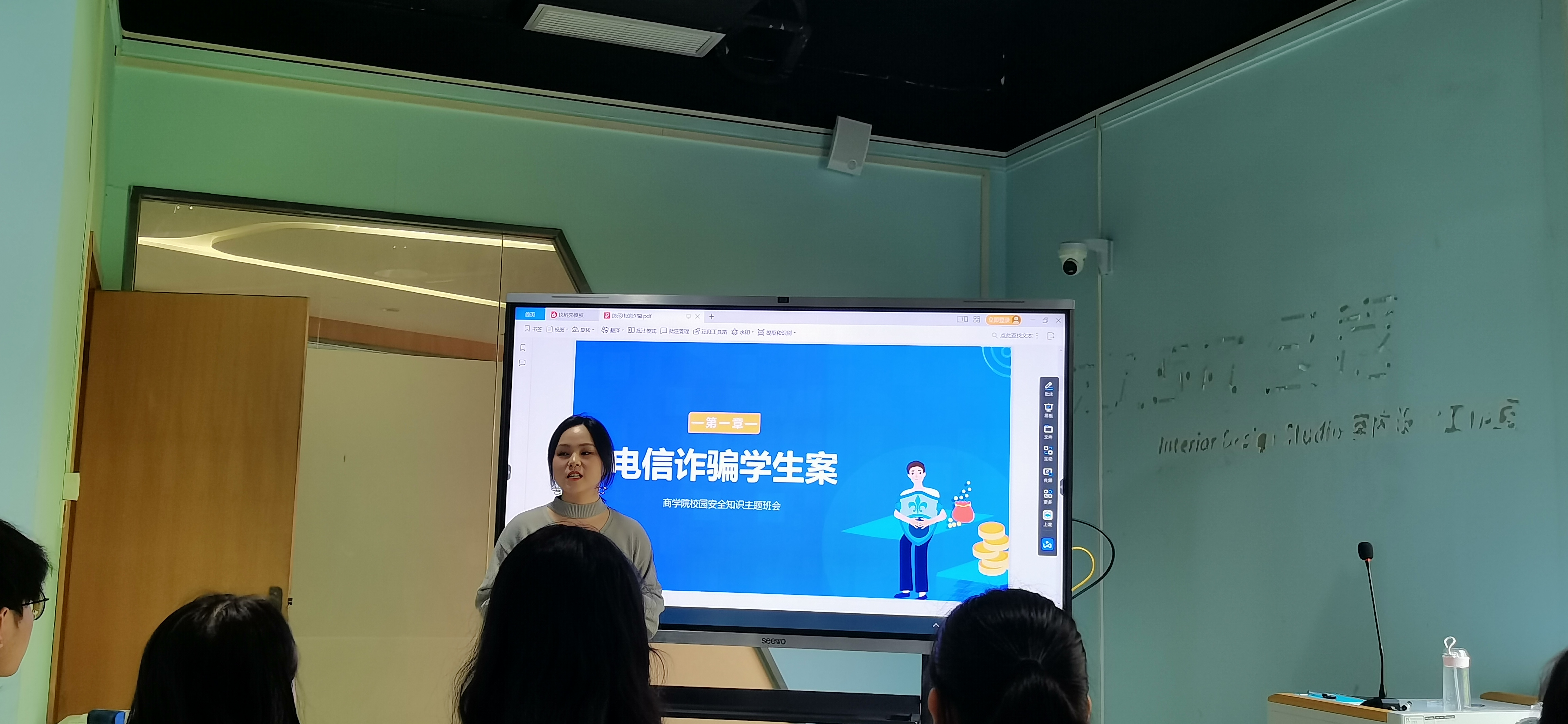 会议伊始,王老师结合校园电信诈骗案件特点,有针对性的选取了校园贷诈骗、网络兼职诈骗、网络游戏诈骗等具有代表性的案例,详细分析了犯罪嫌疑人的作案方式,提醒同学们千万不要抱有“事情不会发生在我身上”的侥幸心理,初步引起同学们的重视,并引出疑问“电信诈骗究竟是怎样的新型诈骗,诈骗成功率为何如此之高,甚至致使有些人倾家荡产?”