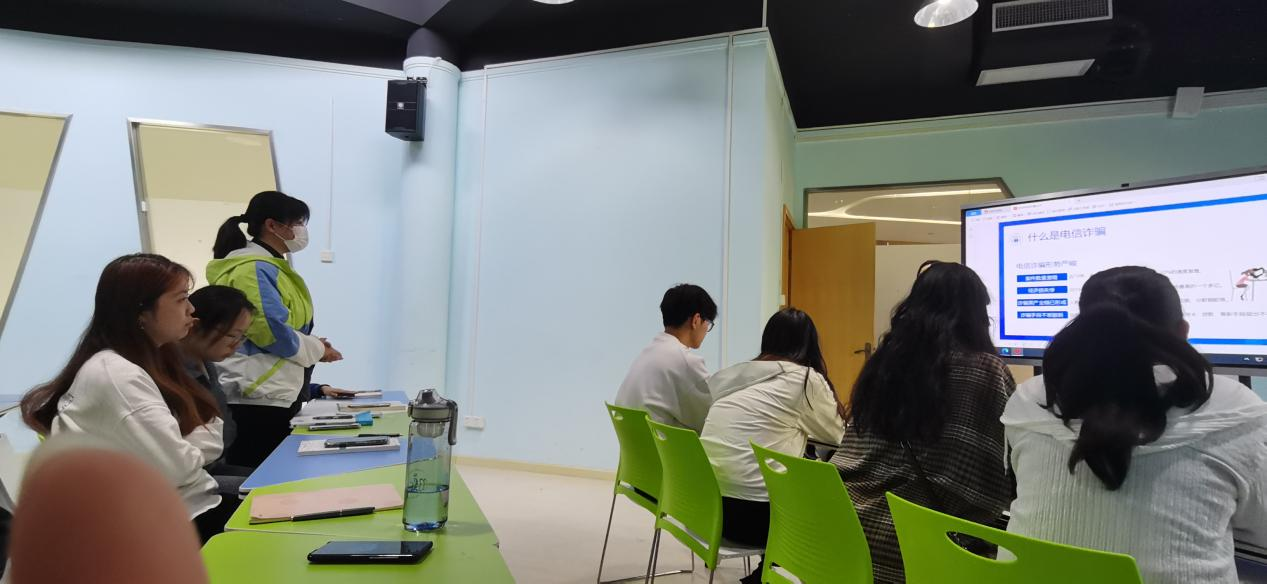 接着,王老师通过解释电信诈骗的概念,引导同学们总结其特点,帮助同学们如何快速识别电信诈骗:人物身份无法确定、沟通工具多为网络、短信方式、对方要求转账汇款等。正是因为其犯罪工具的隐蔽性和诈骗手段的多样性致使案件频发。
