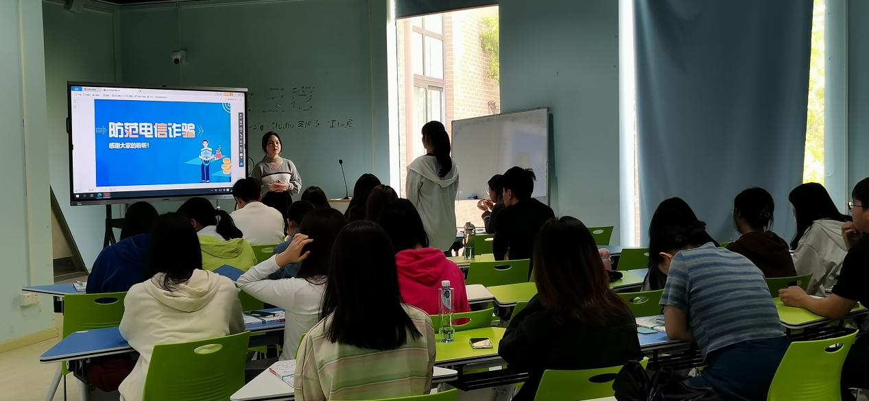 随后,王老师带着学生深入剖析电信诈骗的主要套路,如冒充机关、企事业单位人员诈骗,冒充网上购物客服以订单异常进行退款欺诈,冒充招聘人员诈骗,引诱点击链接诈骗等手段。再结合微视频这一直观的方式进一步增强学生日常风险防范和警醒意识。