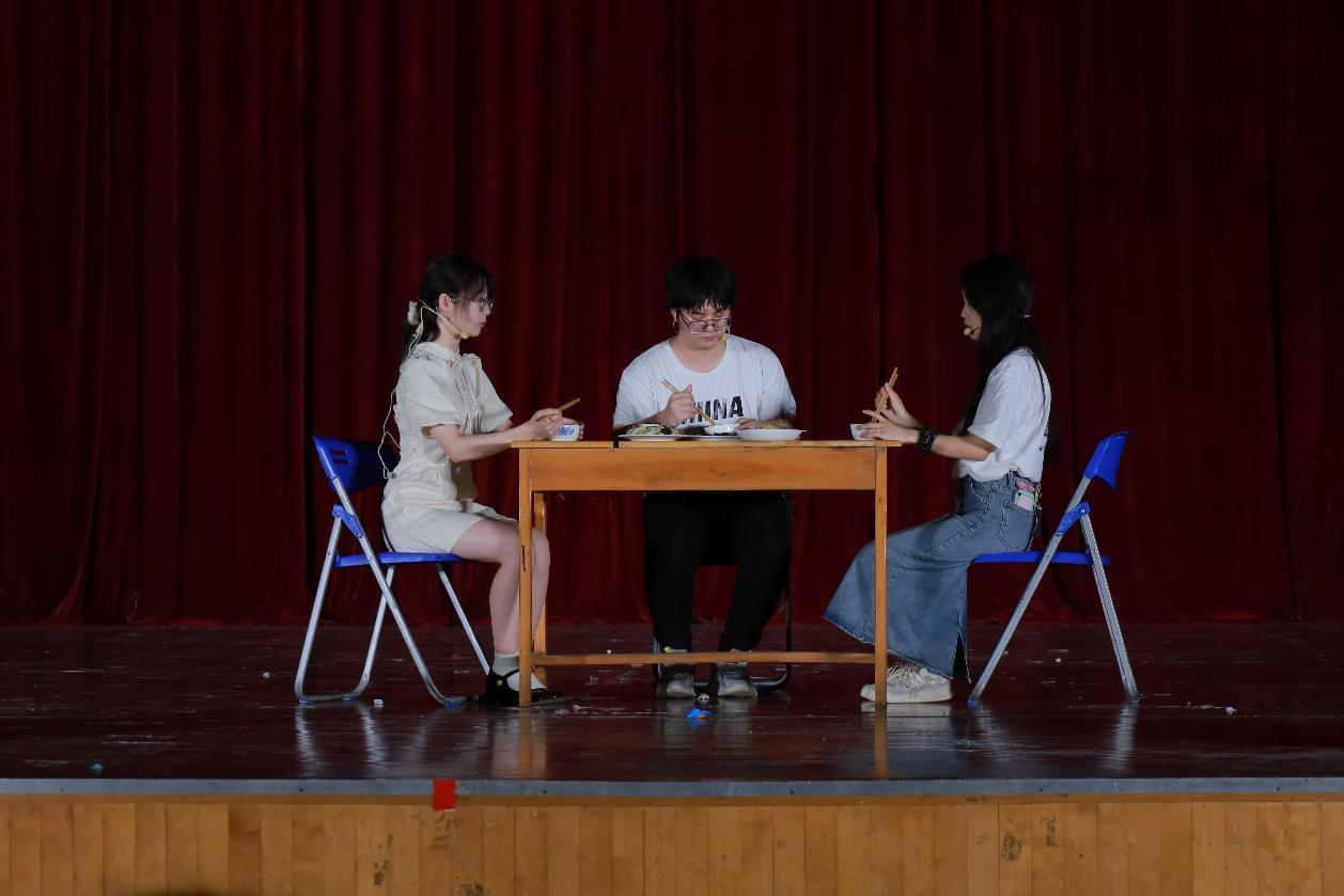 商学院表演的心理话剧《星愿》主要讲述了主人公明溪出国留学,面对家庭变故、学业和事业带来的压力,结识了一群好朋友,在互相扶持下,坚定自我,一步步走向成长最后投入到支教事业的故事。演员们用各自生动的语言和表演将各个角色演绎的活灵活现,赢得观众阵阵喝彩。