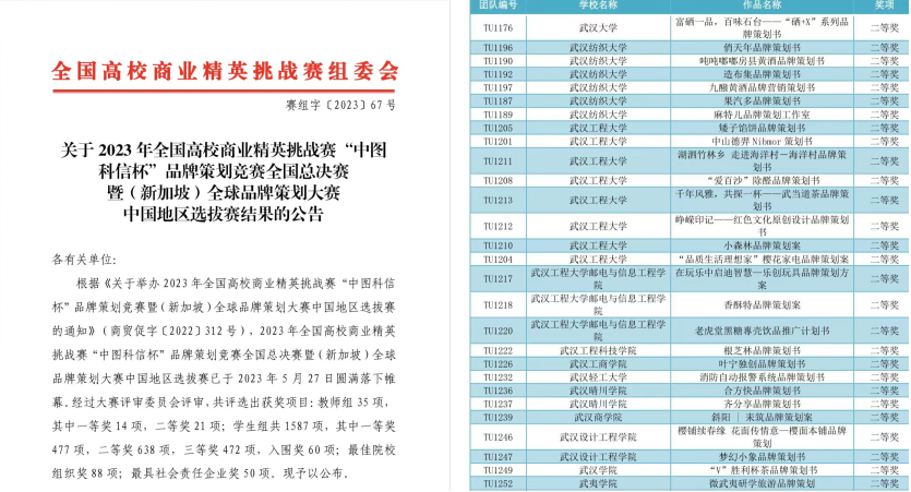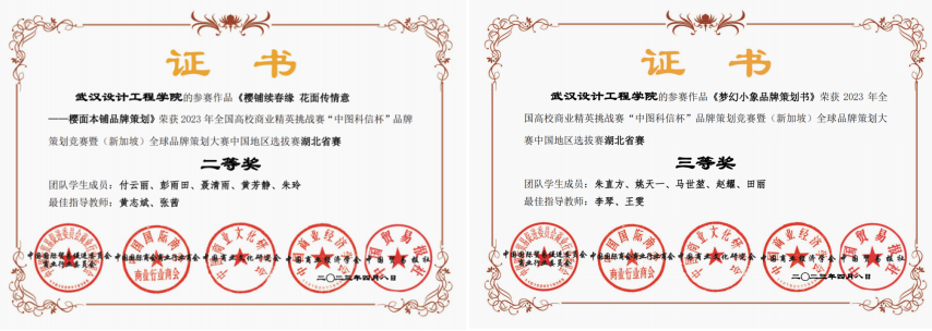 商学院学子荣获全国高校商业精英挑战赛品牌策划竞赛湖北省赛二等奖、三等奖