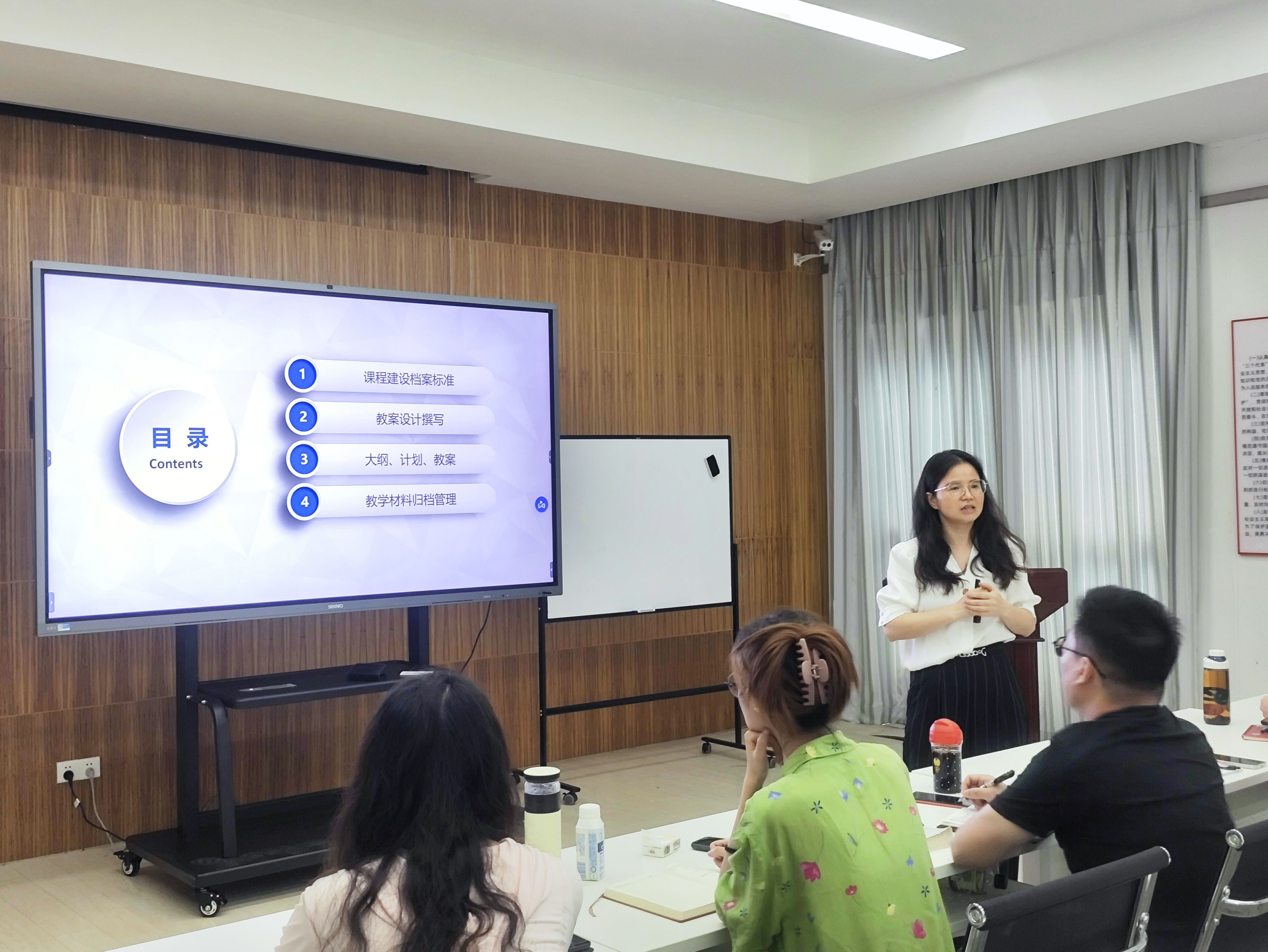 随后,孙严育副教授悉心地讲授了《课程考核标准及材料归档管理》和《课程建设档案标准及材料归档管理》课程,帮助新进教师了解课程评估和材料归档的标准和要求。郭若艺副教授耐心地讲授了《BOPPPS教学模式下的创新教学》和《教案撰写技巧》课程,介绍了创新教学方法和教案撰写技巧。刘昊昕副教授生动地讲授了《毕业论文标准及材料归档管理》课程,帮助新进教师了解毕业论文的标准和材料归档要求。