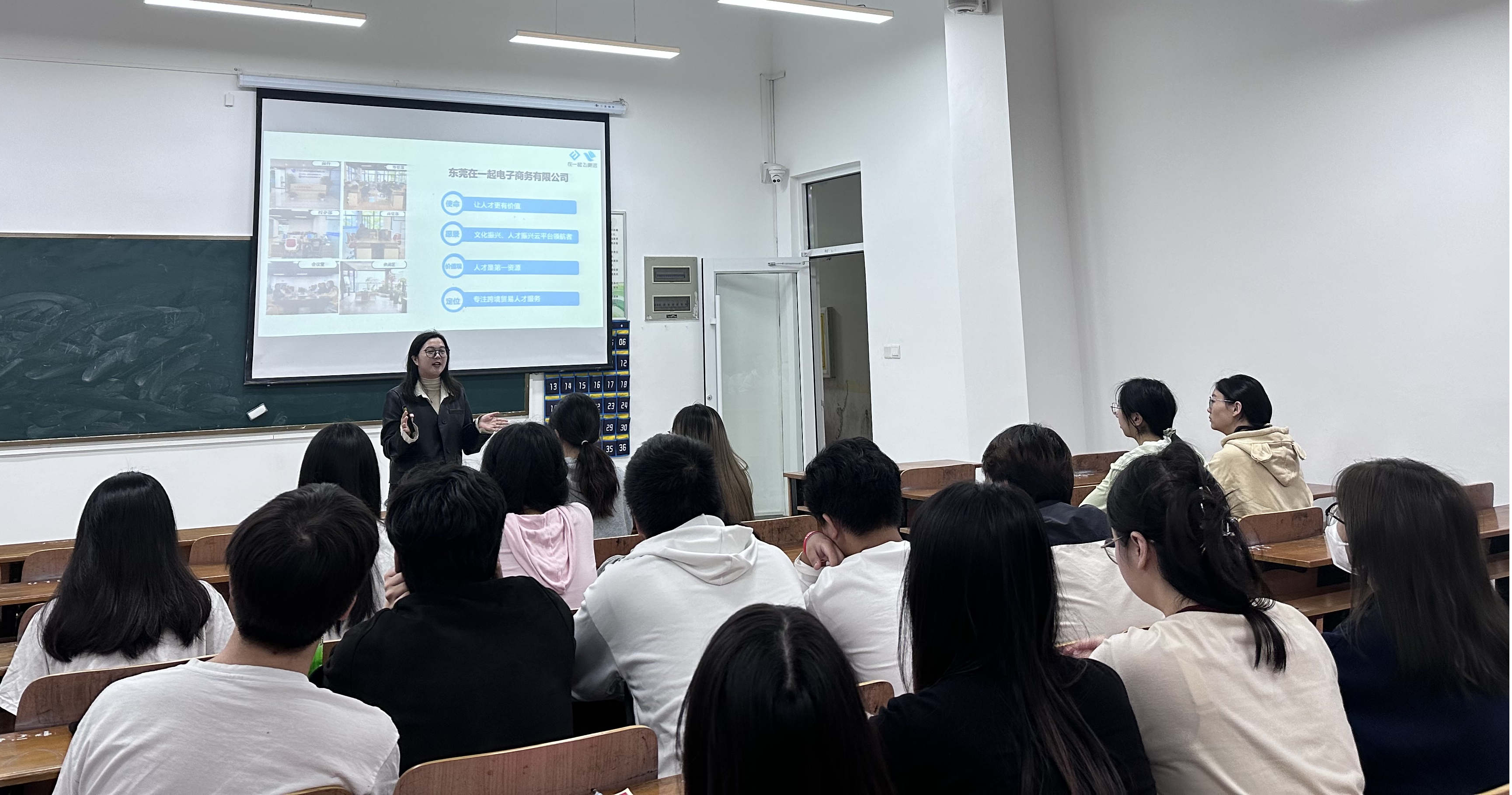 跨境电商在一起有限公司王会经理向毕业生们讲解企业文化