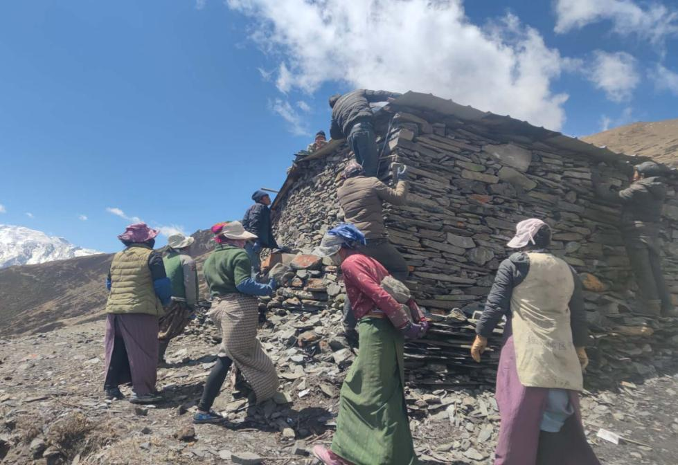 赵艳伟在海拔4000多米的山上同大家一起修建暖舍1