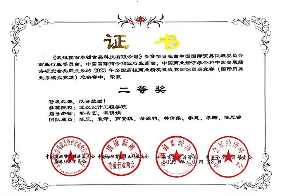 全国高校商业精英挑战赛国际贸易竞赛(国际贸易业务模拟赛道)总决赛二等奖