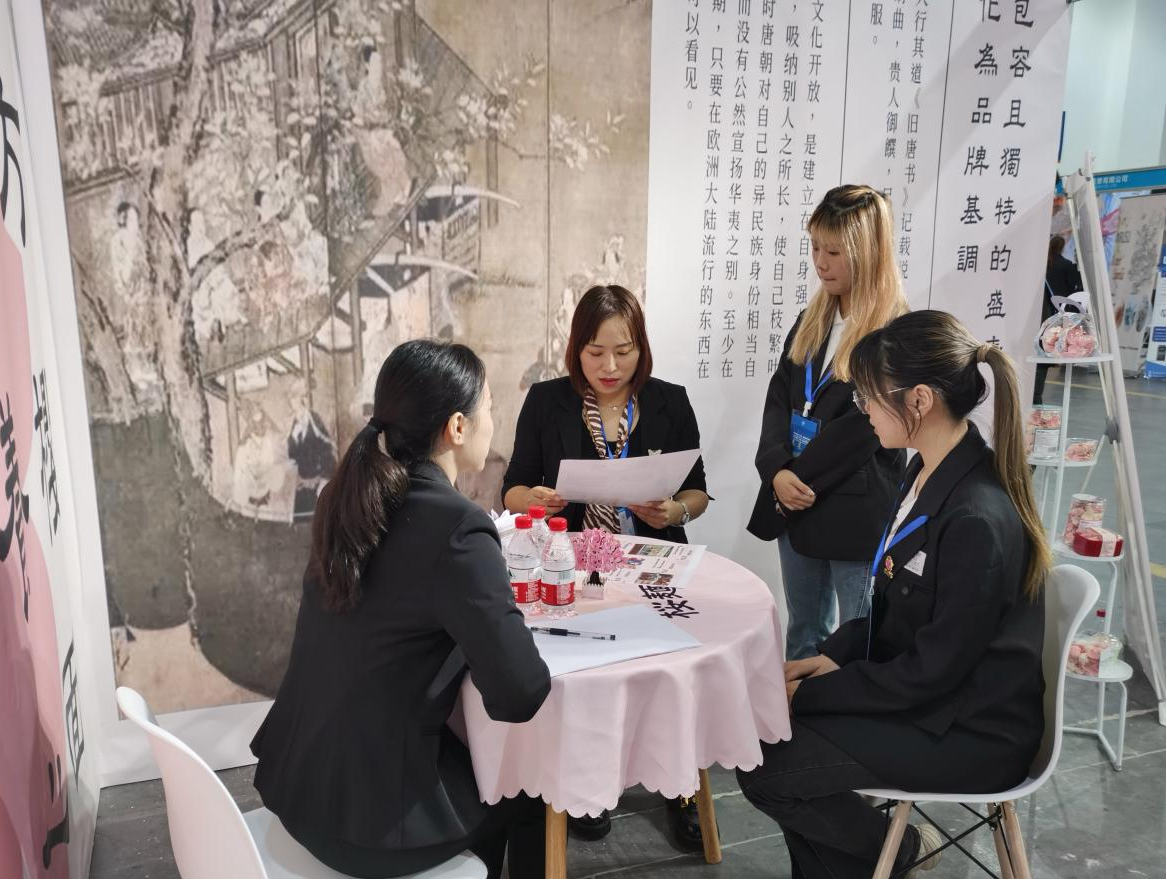备赛期间,指导老师郭若艺和宋明娟对团队成员进行指导培训。面对不同阶段的比赛难度逐渐增大,专业性强,涉及知识面范围广,团队成员共同克服困难,协同合作,带领队友前往樱面本铺线下店进行实地考察拍摄素材,对于新产品发布会和商贸配对谈判环节则把专业知识、英语应用能力、产品推广策略和谈判技能有机融合,进一步提升参赛学生专业水平和应变能力,在现场完美呈现了新产品发布会和商贸谈判现场的场景。