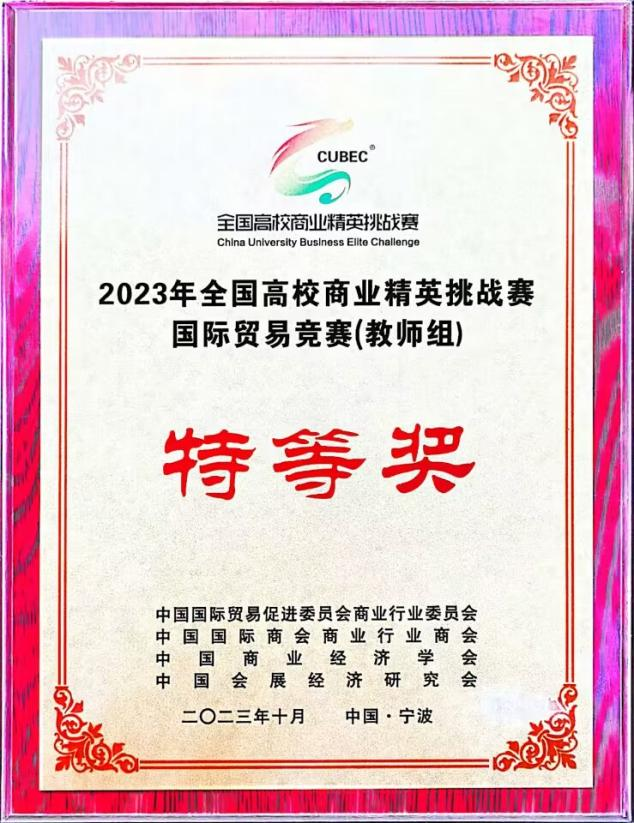 全国高校商业精英挑战赛国际贸易竞赛在近日在浙江宁波落下帷幕。历经前期初赛和复赛,最终来自全国各地32所高校教师团队晋级全国总决赛,通过激烈角逐,教师组特等奖由我校商学院教师代表团队获得。