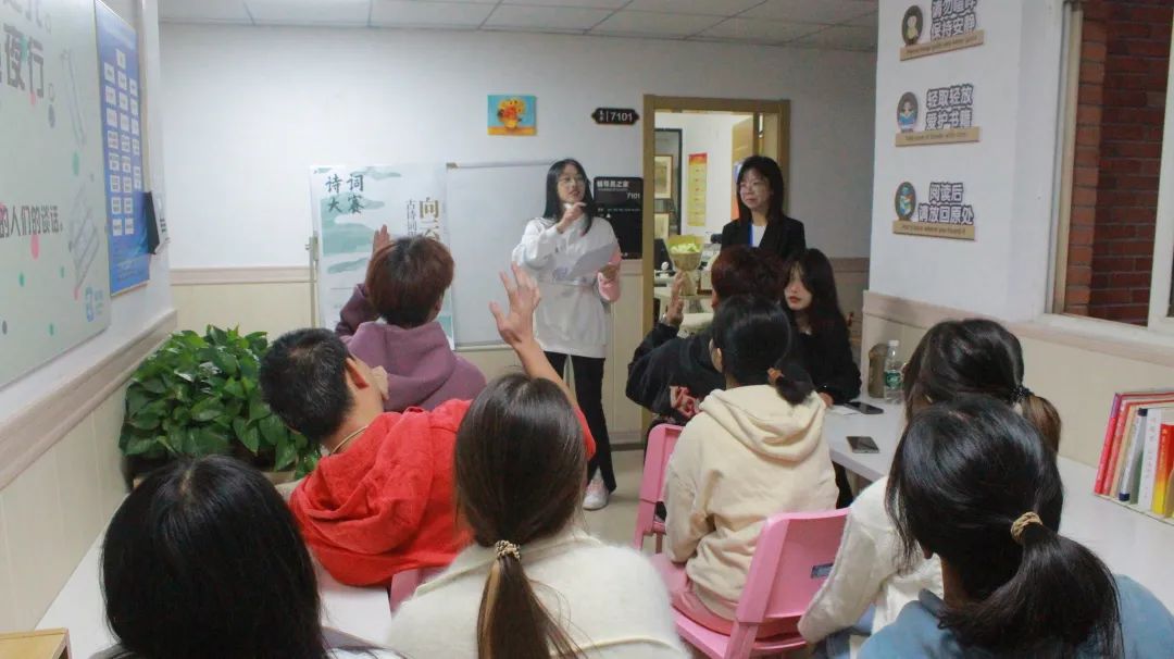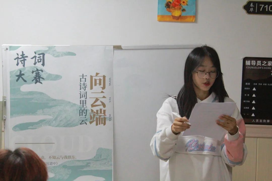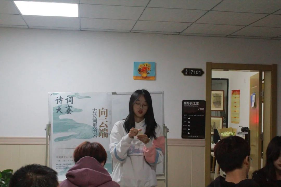 本网讯(通讯员 陈益丹)2023年11月6日下午商学院乐融商苑学生一站式社区内开展了《诗词大会》活动,参与成员有学生工作负责人刘茜老师,辅导员王思琪老师、生活辅导员姜伊凡老师和九名同学,大家满怀热情参加此次活动,来感受中华文化的博大和包容,来感受诗词的永恒的魅力。