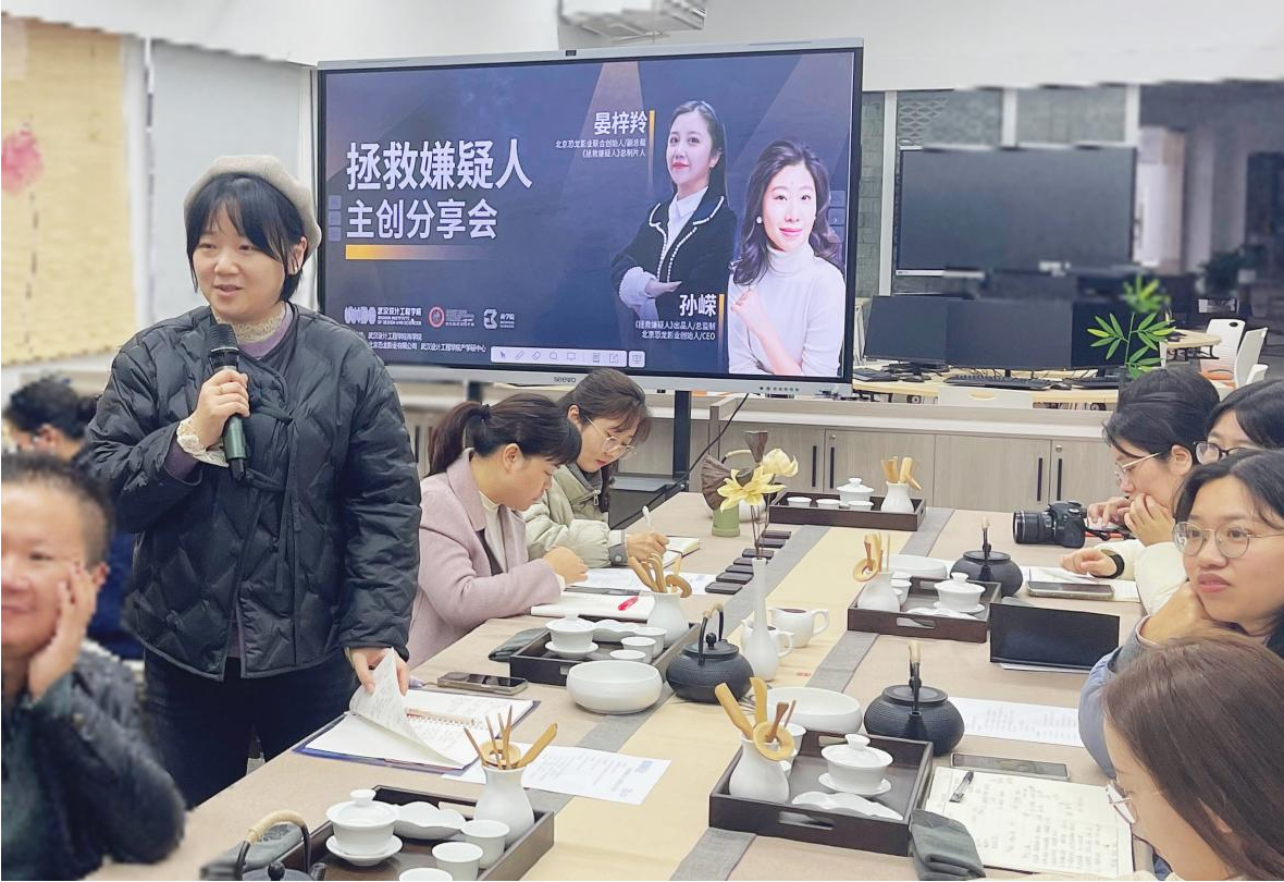 本网讯(通讯员 祁峰 周孟孟 张瑞琴)12月14日下午,电影《拯救嫌疑人》主创团队分享与研讨会在商学院文旅综合实训茶艺室得一堂A3019召开,我院副院长祁峰主持会议。出席会议的嘉宾有来自北京恐龙影业的创始人、总裁孙嵘女士,联合创始人、电影制片人副总裁晏梓羚女士;商学院院长湛柏明,校产学研中心涂清主任、王欣副主任,文化产业与旅游管理系、经贸与管理系、商务英语系的教师代表参加本次会议。