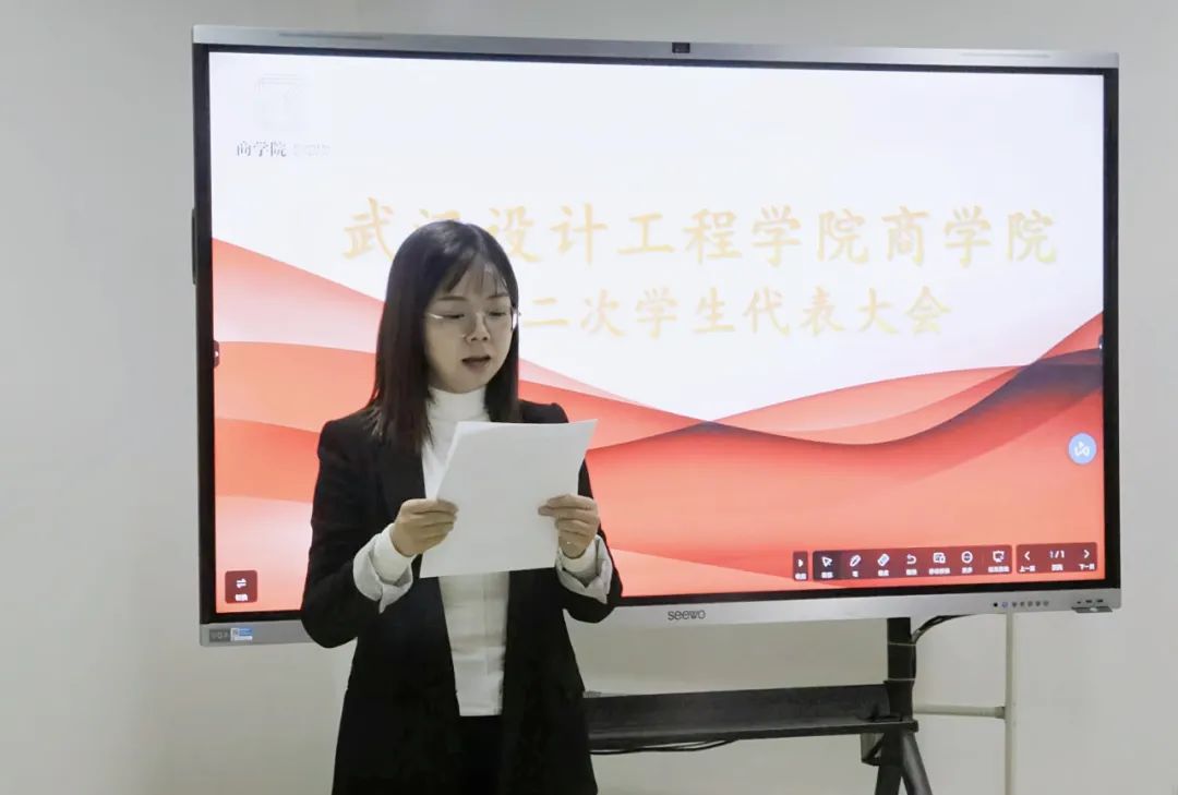 商学院学生会指导老师刘茜老师发表了热情洋溢的讲话,她对学生代表大会的召开表示热烈祝贺,并对学生会过去一年的工作给予了高度评价。她指出,学生代表大会是学校联系学生的桥梁和纽带,希望学生代表们认真履行职责,积极参与学校的管理和建设,为学校的发展贡献自己的力量。