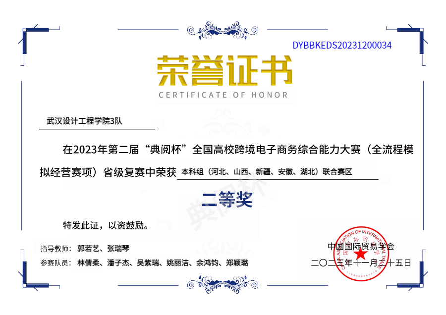 国际经济与贸易专业2101班组成五支队伍共计30名学生参赛,在我校商学院郭若艺、张瑞琴、陈正坤和刘慧敏四位老师的指导下,历经两个月训练,其中三支队伍分获二等奖2项,三等奖1项,最后两支队伍顺利经过省赛晋级国赛,并荣获三等奖2项。
