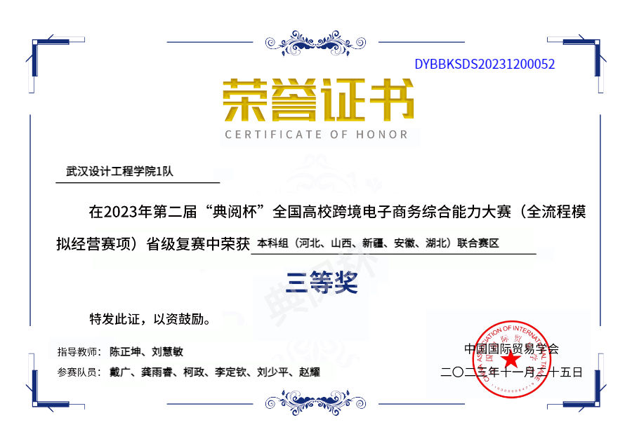 本网讯(通讯员 王茂盛)日前,由中国国际贸易学会主办的第二届“典阅杯”全国高校跨境电子商务综合能力大赛落下帷幕。经过激烈角逐,由我校商学院组建的两只代表队获三等奖两项。