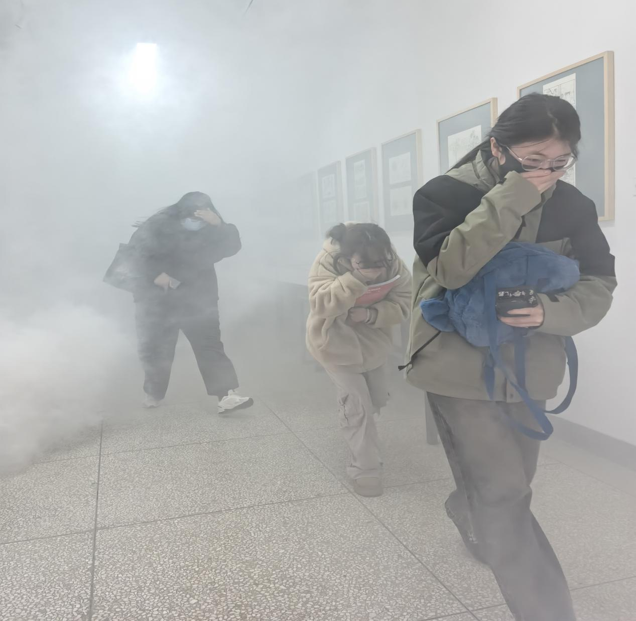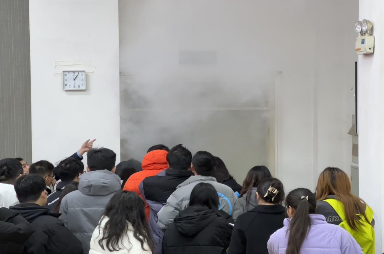 为了让同学们更加直观地了解火灾逃生的过程,培训会还安排了一次模拟火灾逃生的演练活动。演练开始前,王教官详细讲解了逃生路线和注意事项。随着警报声响起,同学们迅速反应,按照预定的疏散路线,低头弯腰、捂住口鼻,有序地撤离到安全区域。整个演练过程紧张而有序,达到了预期的效果。