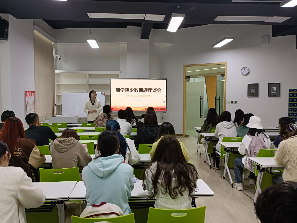 本网讯(通讯员 刘茜)为进一步深化民族团结进步教育,助力少数民族学生成长成才,商学院于4月8日中午,在A2139教室成功举办了一场别开生面的少数民族学生座谈会。此次座谈会以“民族心连心,座谈乐融融”为主题,旨在通过深入的交流与探讨,增强学生对党的二十大精神的理解,铸牢中华民族共同体意识,同时也为少数民族学生提供了一个展示自我、交流心得的平台。