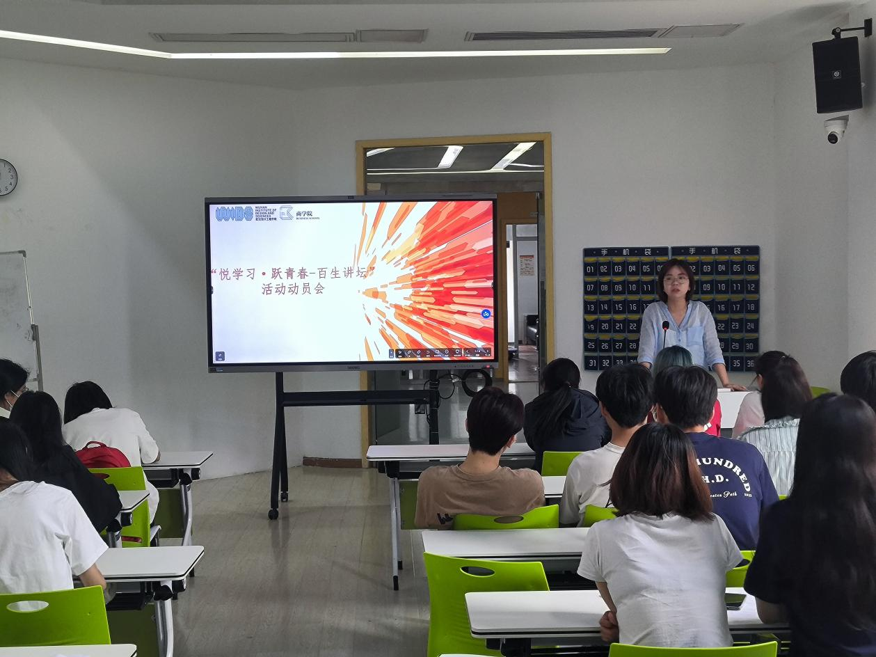 动员会上,商学院学生工作负责人刘茜强调,百生讲坛活动的重要意义,指出这是学校培养青年学子综合素质、提升思辨能力和表达能力的重要平台。同时,也对即将参与演讲的同学们提出了殷切的期望,鼓励他们勇敢表达,展现商学院学子的风采。