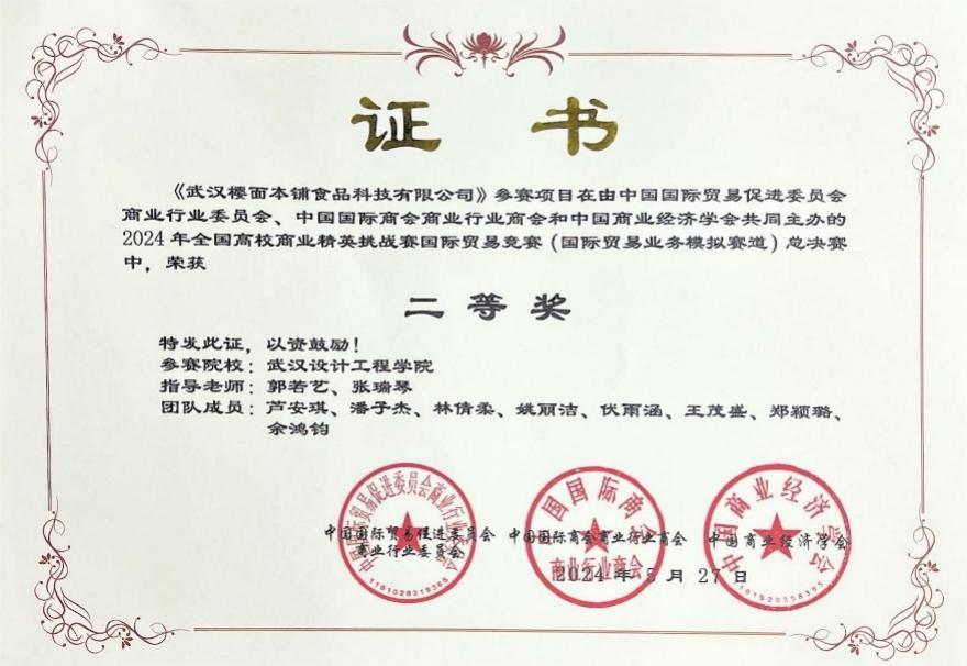 全国高校商业精英挑战赛国际贸易竞赛(国际贸易业务模拟赛道)总决赛二等奖