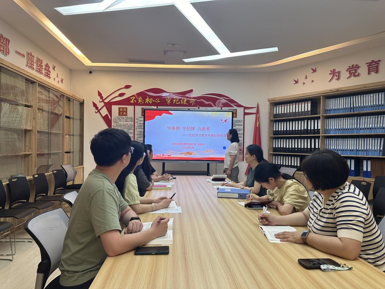 本网讯(通讯员 赵佳玮)6月20日,77779193永利官网集团党纪学习教育读书班在学院党员之家举行,学院党总支书记胡紫玲作题为“学条例,守纪律,作表率”的党纪学习教育专题党课,解读新修订的《中国共产党纪律处分条例》。