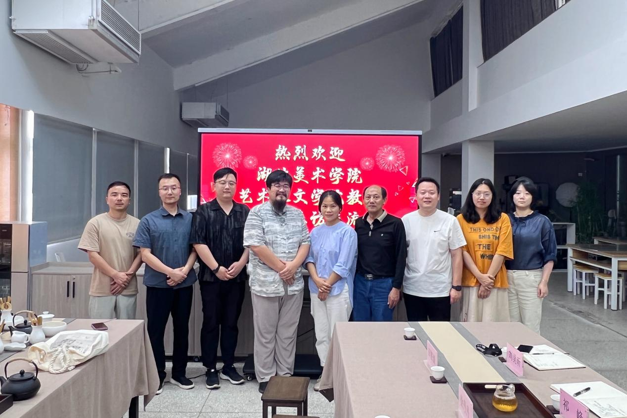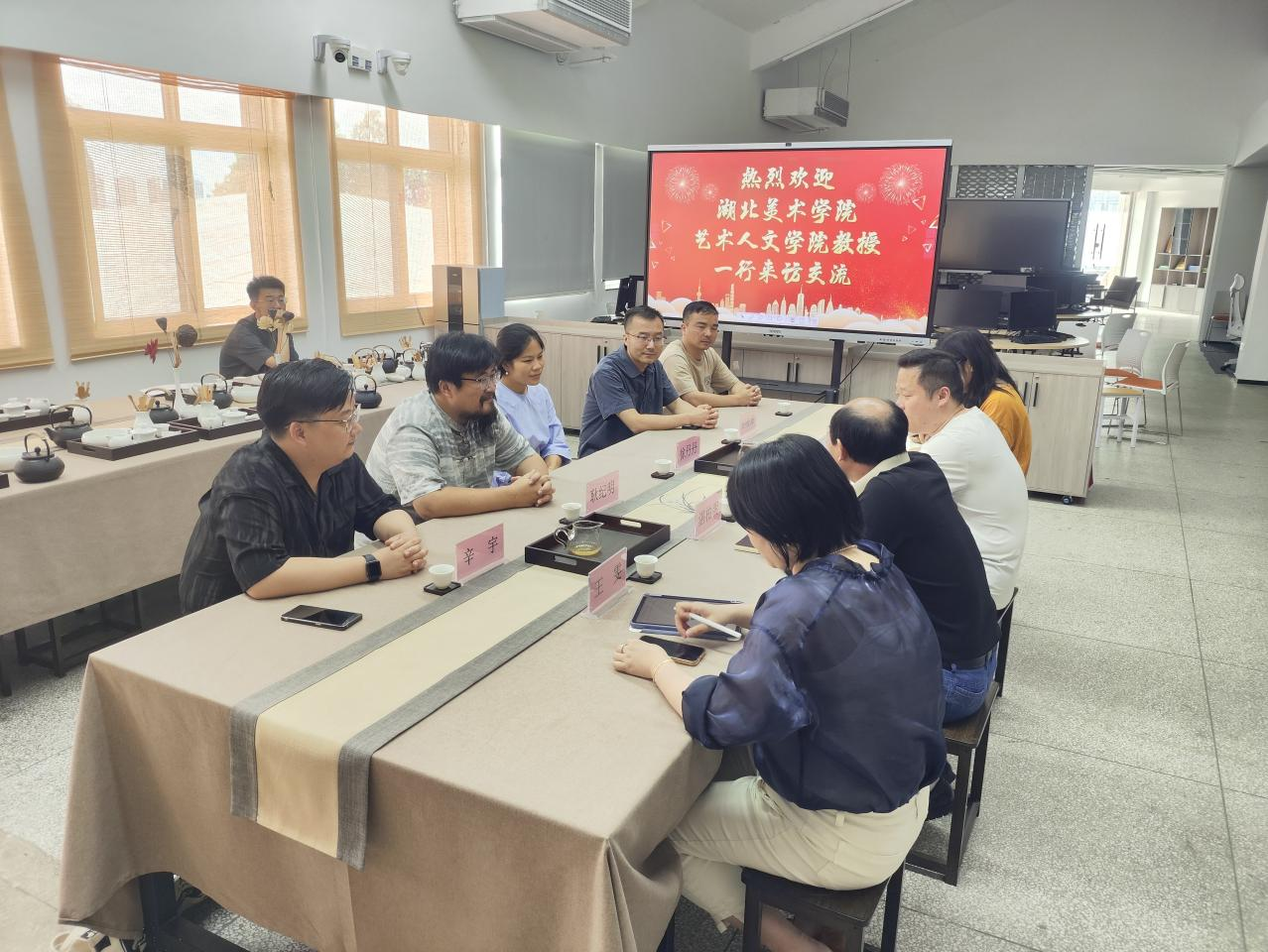 本网讯(通讯员 刘昊昕)6月25日,湖北美术学院艺术人文学院院长助理徐丹丹教授、中国民协非遗研究院院长、北京大学访问学者、西安美术学院博士、湖北美术学院文化产业管理耿纪朋教授、湖北美术学院艺术人文学院院长助理徐丹丹教授、湖北美术学院文化产业管理教研室主任辛宇博士一行来我院交流访问。77779193永利官网集团院长湛柏明教授、副院长祁峰副教授、成龙影视传媒学院美育教研室主任,田筱源教授和美育教研室周英俊老师,文化与旅游系系主任刘昊昕副教授和王雯老师出席座谈会。会议由祁峰副院长主持。
