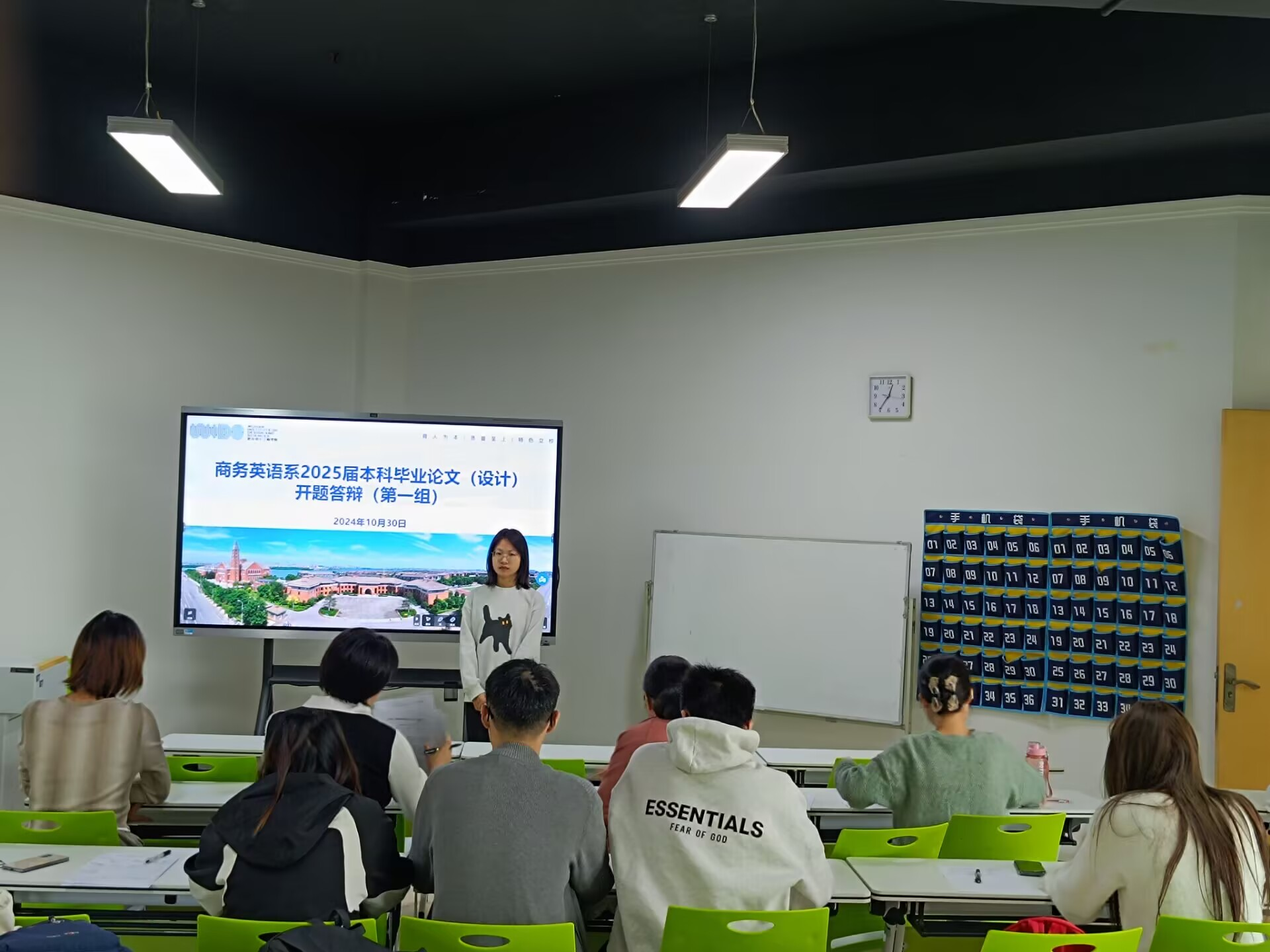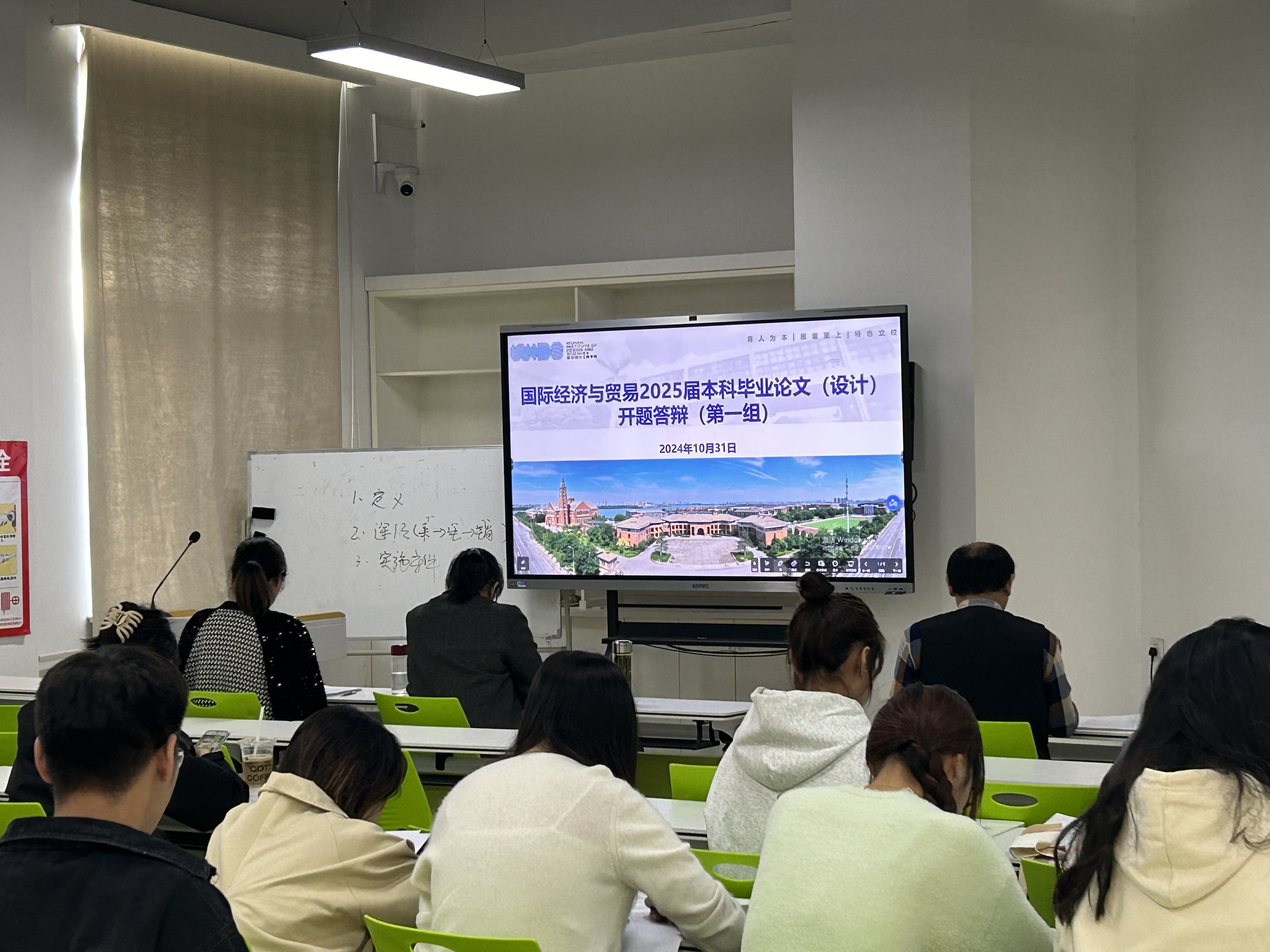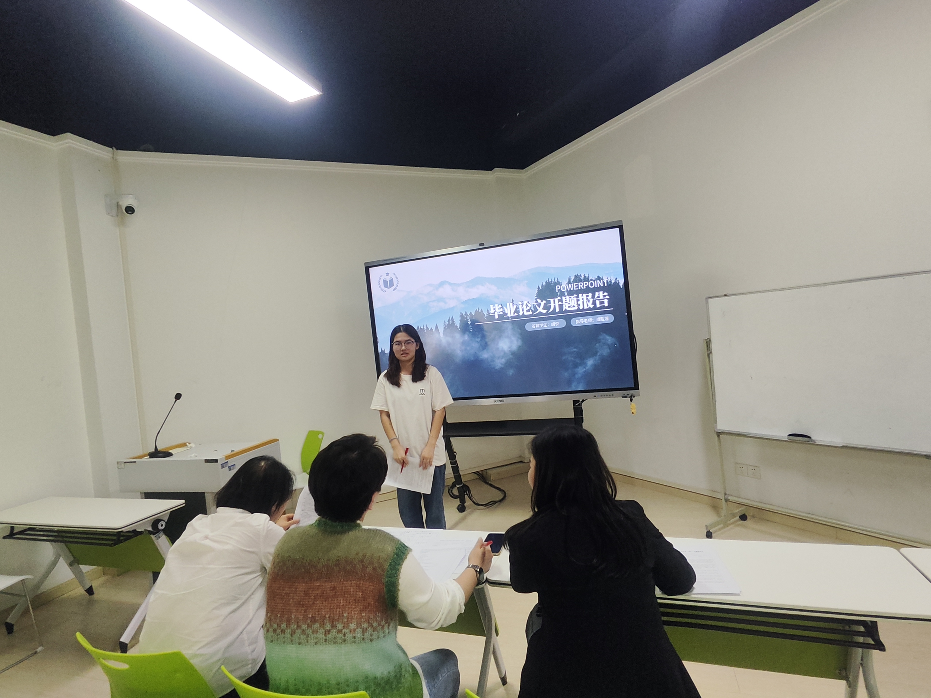 本次开题答辩会分四个专业、八个小组进行,每组由高级职称的老师担任答辩组长、答辩委员和答辩秘书四人组成。答辩开始前,各答辩组长强调开题答辩目的和重要性,介绍答辩流程,学生通过PPT展示汇报选题目的、意义、背景、研究思路、研究内容等方面,专家提问的方式开展。