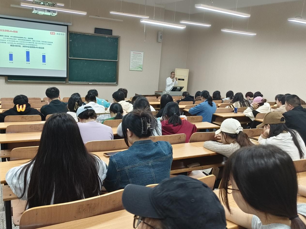 在讲座的第二部分,王瑶明老师将话题转向了考研升学。通过科普了近年来的考研形势,分析考研热门专业、报考难度及录取趋势,为同学们提供了科学的考研升学规划。王老师强调了科学备考的重要性,分享了自己的备考策略和心得,包括资料选择、时间管理、复习方法等方面的实用建议。