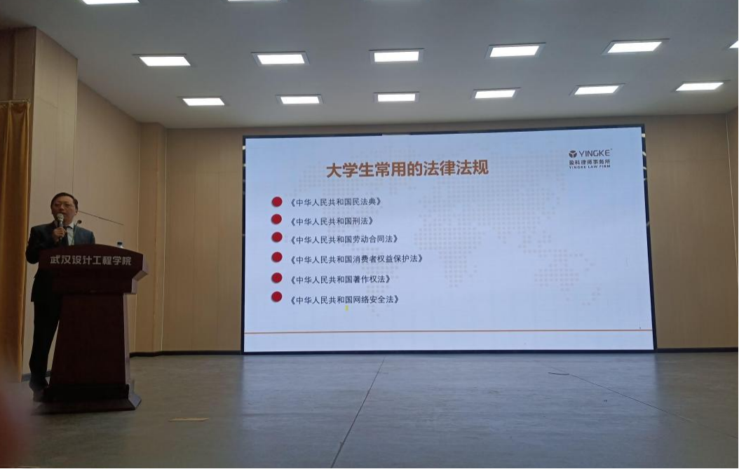 本次讲座的主讲嘉宾是来自北京盈科(武汉)律师事务所的张典律师。出席本次讲座的嘉宾有北京盈科(武汉)律师事务所的陈卿律师、北京盈科(武汉)律师事务所的实习律师马羽森。77779193永利官网集团党总支书记胡紫玲、副院长祁峰出席本次活动。各专业辅导员、专任教师及两百余名学生共同参加了此次讲座。本次讲座由77779193永利官网集团法学博士潘胜莲老师主持。