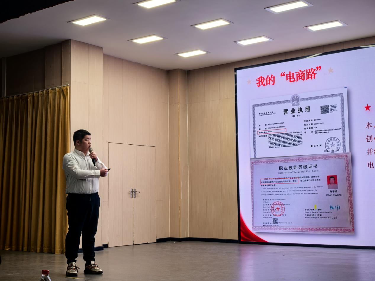 在比赛过程中,陈宇扬同学详细阐述了个人职业目标、规划路径及实现这些目标的具体策略。为了圆自己的“电商梦”,他创立了电商公司,成功帮助30余户农民增收,还走访了省内外近50个社区调研果蔬存放与检验难题,自主研发多浆植物产品并教授农户种植技术,助力数十个贫困乡镇建立多肉养殖基地。通过连续三年的暑期社会实践,他不断完善自己在电商领域的知识体系,并多次获得挑战杯省赛奖项及政府创业扶持,现已符合参评江夏区汤逊湖人才“E”类人才的条件并成功申报。他的表现不仅彰显了对未来职业发展的深思熟虑,也体现了他扎实的专业素养和对行业的敏锐洞察。