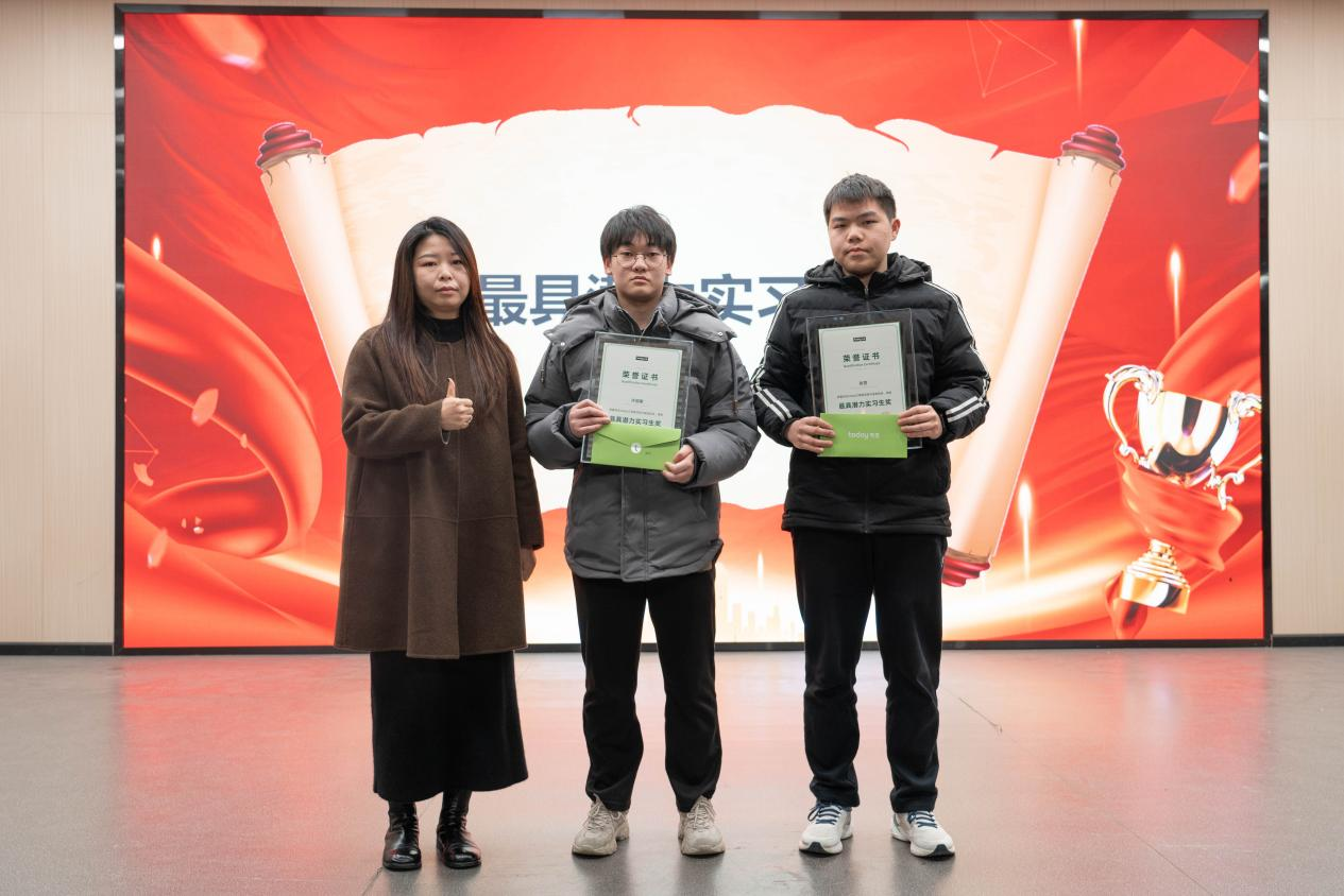 龚文洁部长为许国敏、张营同学颁发“最具潜力实习生奖”