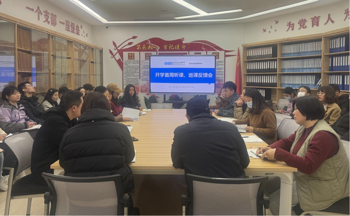 2024-2025学年第二学期开学首周听课、巡课反馈会议在得一堂A2149召开。本次反馈会由学院教学督导张希、熊燕主持,学院院长湛柏明、党总支书记胡紫玲、副院长祁峰、辅导员、教务以及全体专任教师参加会议,共同围绕开学首周听课、巡课情况展开讨论。