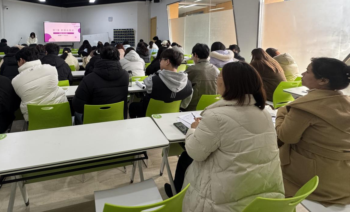 学院党总支书记胡紫玲与学生同听《新媒体概论》课程