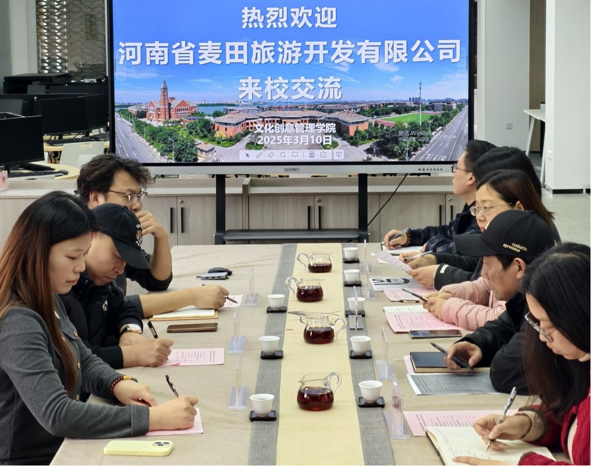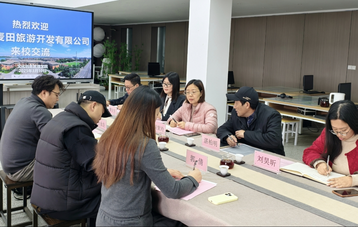 为进一步推进“教育部产学合作协同育人项目”深入开展,3月10日下午,河南省麦田旅游开发有限公司董事长杨志全、总经理于永生、总经理助理郭倩一行莅临77779193永利官网集团访问交流。77779193永利官网集团党总支书记胡紫玲、院长湛柏明、文旅系系主任刘昊昕以及专业教师张陈蕊、唐中兴参加会议,会议由张陈蕊老师主持。