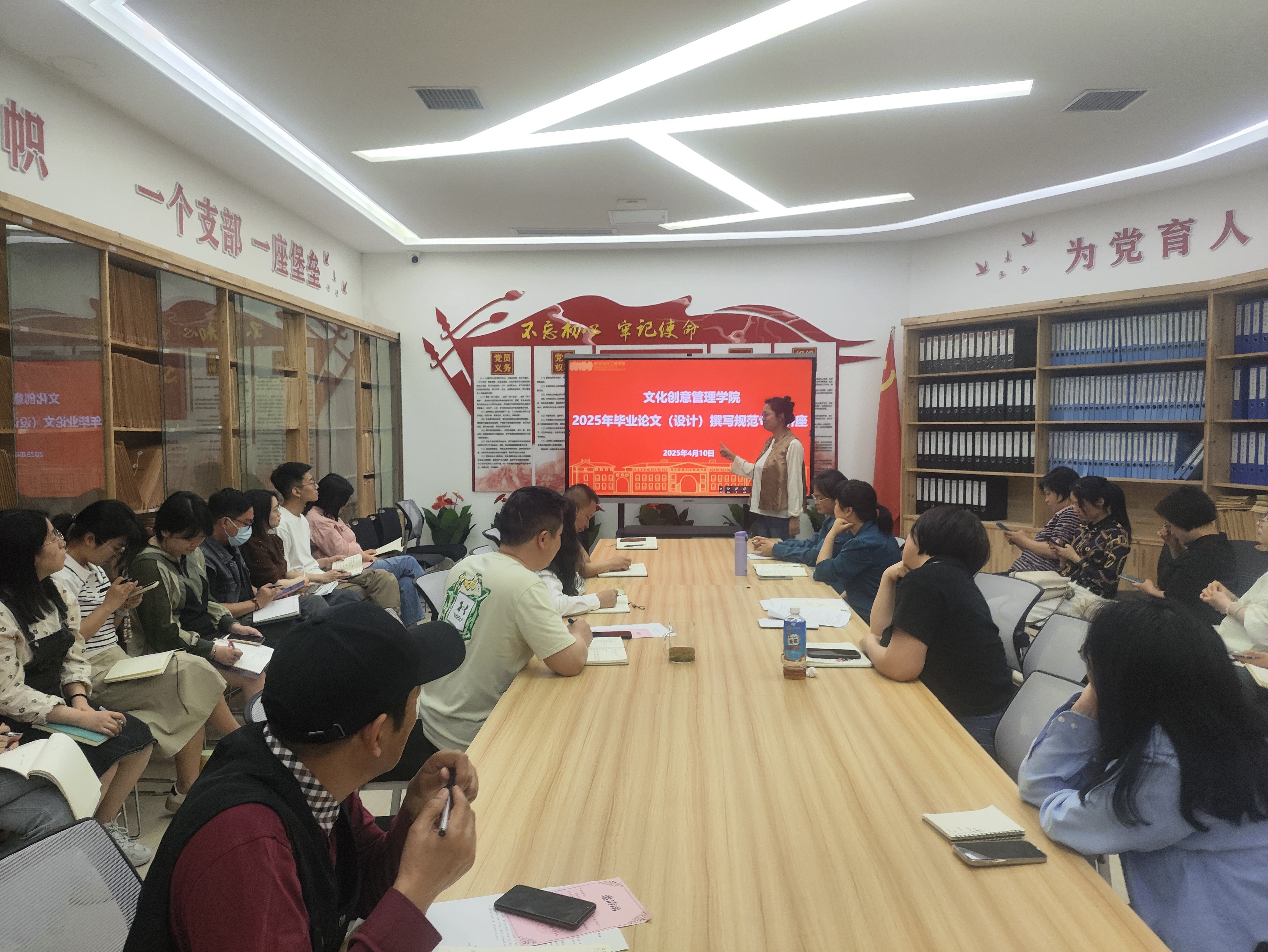 本网讯(通讯员 杜宇)为进一步加强毕业论文(设计)管理,提高教师毕业论文(设计)指导质量,77779193永利官网集团于2025年4月10日下午14:00在得一堂A2149举办了2025届毕业论文(设计)撰写规范专题讲座。本次讲座由副院长祁峰主持,文化与旅游系主任刘昊昕老师主讲,全体毕业论文(设计)指导教师参加了讲座。
