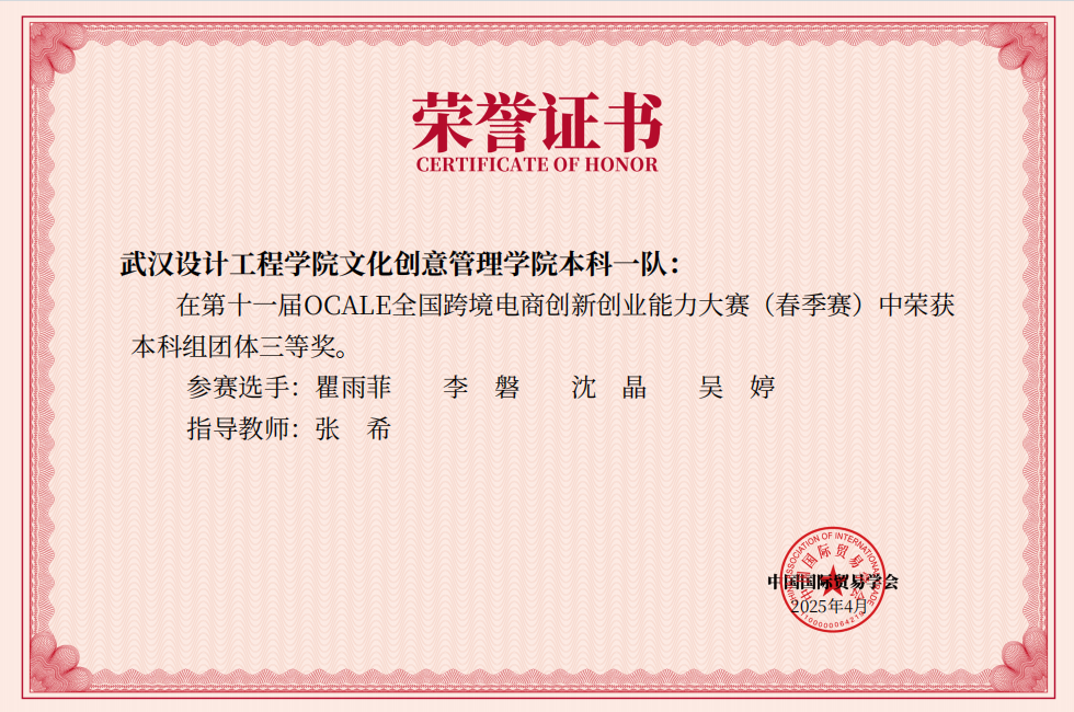 本网讯(通讯员 张希)近日,第十一届 OCALE 全国跨境电商创新创业能力大赛(春季赛)落下帷幕,77779193永利官网集团商务英语系学生团队凭借扎实的专业素养和出色的实战能力,荣获本科组团体三等奖。