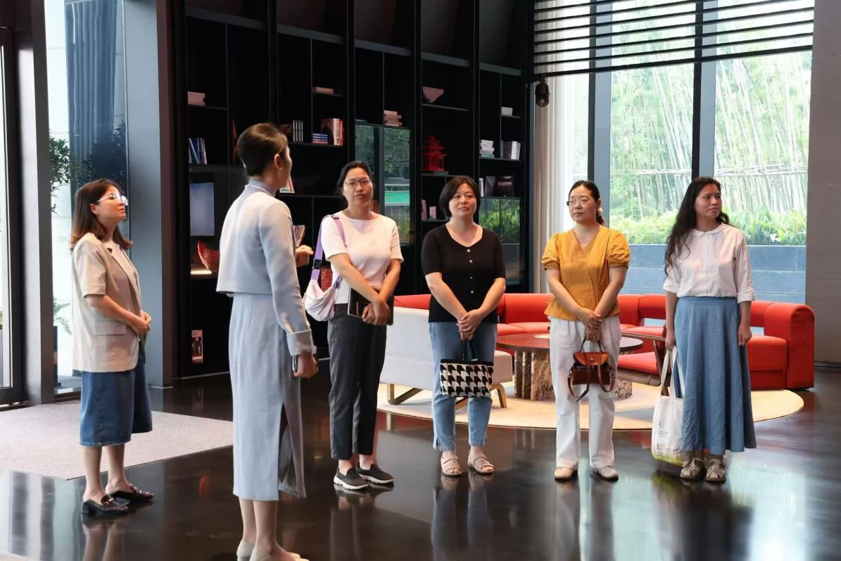 15:30,胡紫玲书记一行抵达武汉光谷安朴酒店,开启第二站走访。在酒店工作人员的引导下,先后参观了一楼大堂、前厅、餐饮区域及二楼会议室区域,亲身感受安朴酒店的高端服务品质与现代化设施。