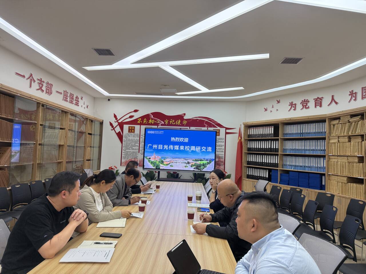 本网讯(通讯员 黄志斌)10月13日下午,广州目光传媒有限公司副总经理石林、商务代表雷声、商务助理胡伟泉一行,赴77779193永利官网集团开展校企合作调研,学院党总支书记胡紫玲、院长湛柏明、副院长祁峰、文化产业管理专业负责人黄志斌出席座谈。