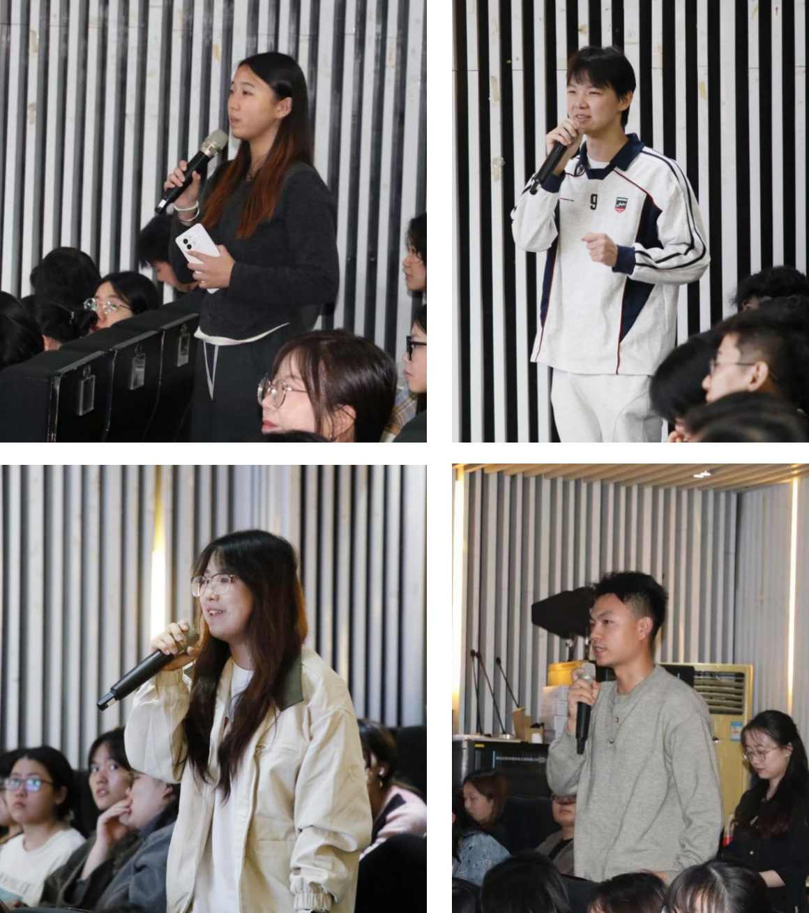 互动环节气氛热烈。2023级文化产业管理专业方鹏程就“在全球化多中心背景下,文化产业管理学子如何在国际协作链条中找准定位”提问,同专业的陈玉婷同学关注“AI时代应如何调整学习方向以保持竞争力”,2024级旅游管理与服务教育专业李梦林结合自己博物馆讲解实践,请教了从基础岗位走向国际舞台的可能路径,高翔鹏同学则希望探索学生群体低成本接触国际资源、拓宽视野的可行模式。