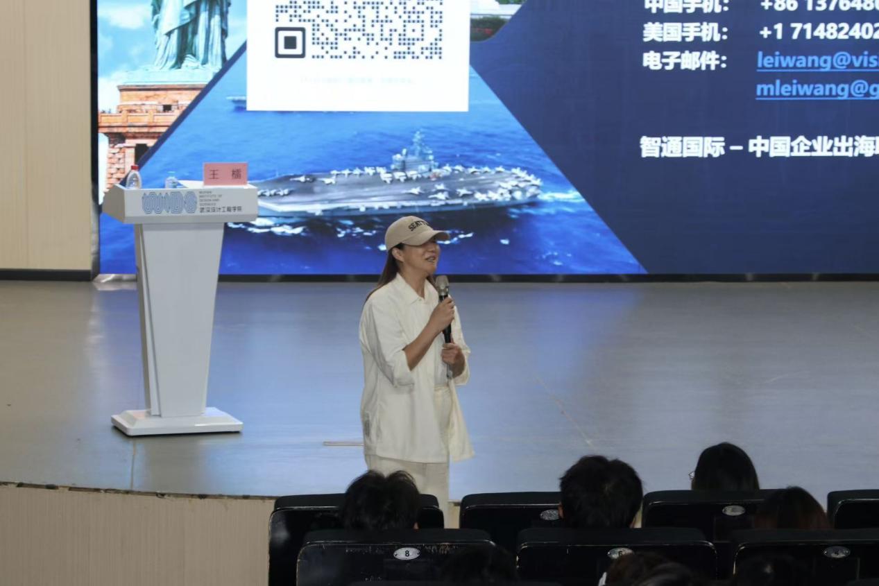 讲座尾声,校董事魏彬女士致辞。她亲切透露,王檑先生不仅是她高中校友,更是大学同窗,这份跨越岁月的情谊为本次活动增添了特别意义。魏董代表学校感谢王檑先生以开阔的国际视野与实战经验,为学子打开了通向世界的思维之门。她勉励同学们:“世界从不在远方,它就藏在你们的眼光与行动中——愿你们勇敢连接、敢于创造。”更令人振奋的是,魏董以实际行动践行“以生为本”的理念,她表示次日将启程,为推动学校国际化合作、拓展全球网络而奔走,助力学子真正实现“从武汉走向世界”。