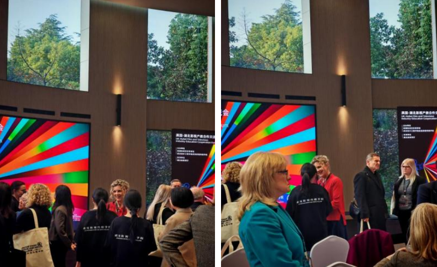 本网讯(通讯员 商务英语系)10月22日,由英国驻武汉总领事馆与成龙影视传媒学院联合主办、湖北省教育厅支持的“英国—湖北影视产教合作交流会”在我校顺利举办。来自中英两国高校、影视机构及行业组织的120余名代表齐聚一堂,共同探讨影视产教融合与国际合作新路径。