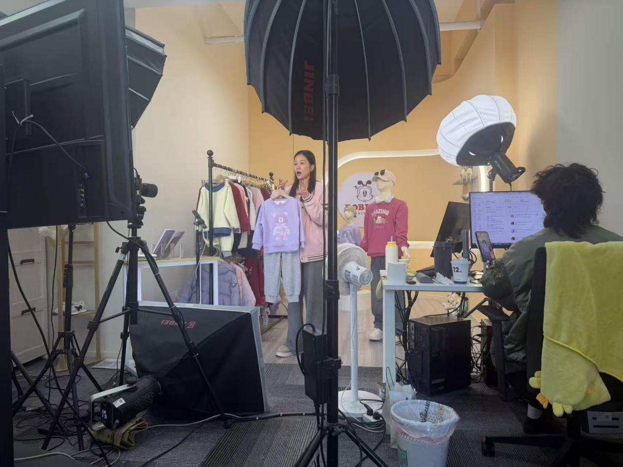 随后,在招聘经理刘茜等企业导师的带领下,同学们分组参观了摄影部、道具间、财务部与分销部。摄影部内,专业相机、补光灯与背景板整齐排列,工作人员正在为新款童装拍摄宣传图。导师特别提到:“对摄影、视觉设计感兴趣的同学,大三时可申请来我们边里实习,我们将提供从拍摄到后期修图的全流程实践机会。”道具间里,风格各异的童装陈列、温馨的布景与各类的拍摄道具令人目不暇接。导师解释道,这些道具都是为了营造更具代入感的直播现景。而在财务部与分销部,同学们了解到企业资金管控、电商订单核算及分销渠道拓展等后台支撑体系,对电商企业的整体运营有了更直观的认识。