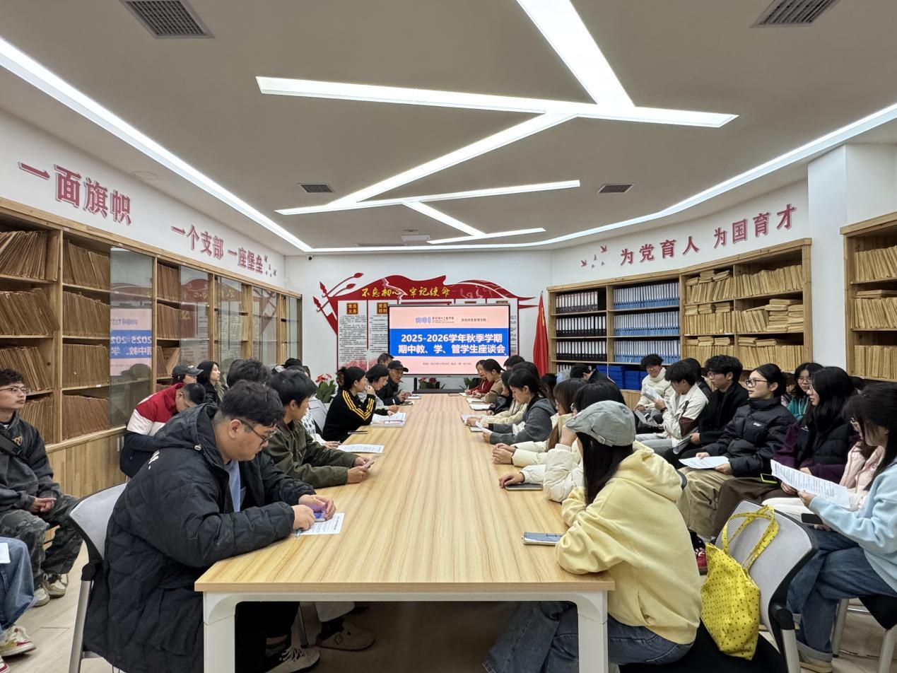 本网讯(通讯员 秦秋阳)为进一步提升教学质量,优化育人环境,加强教师与学生间的全面沟通,我院于2025年11月26日和28日,分别在武汉和红安两个校区组织召开了期中教、学、管专项学生座谈会。两场座谈会旨在从“教”、“学”、“管”三个维度全面把握本学期教学情况,进一步促进学院的教学工作质量提升。