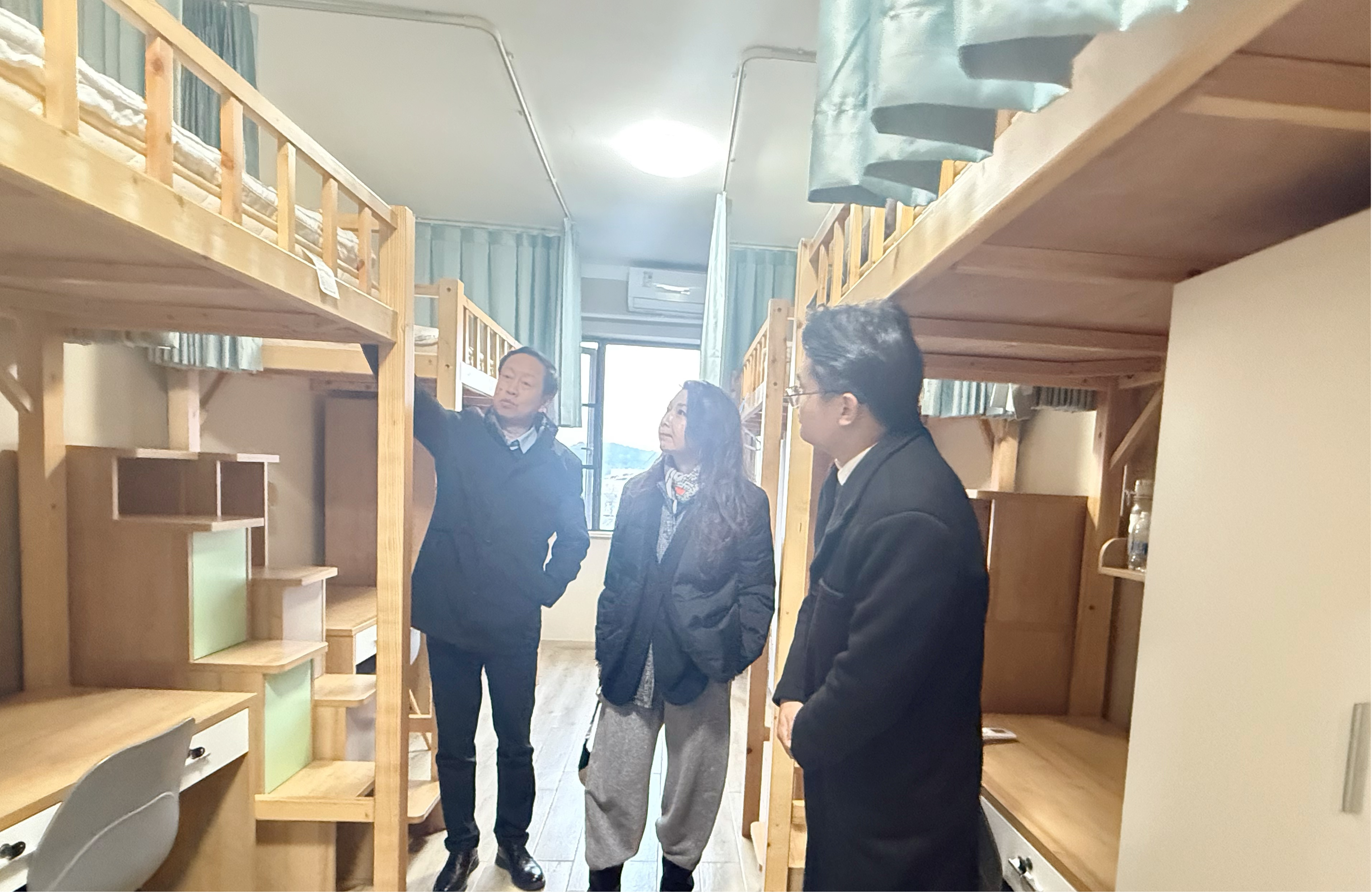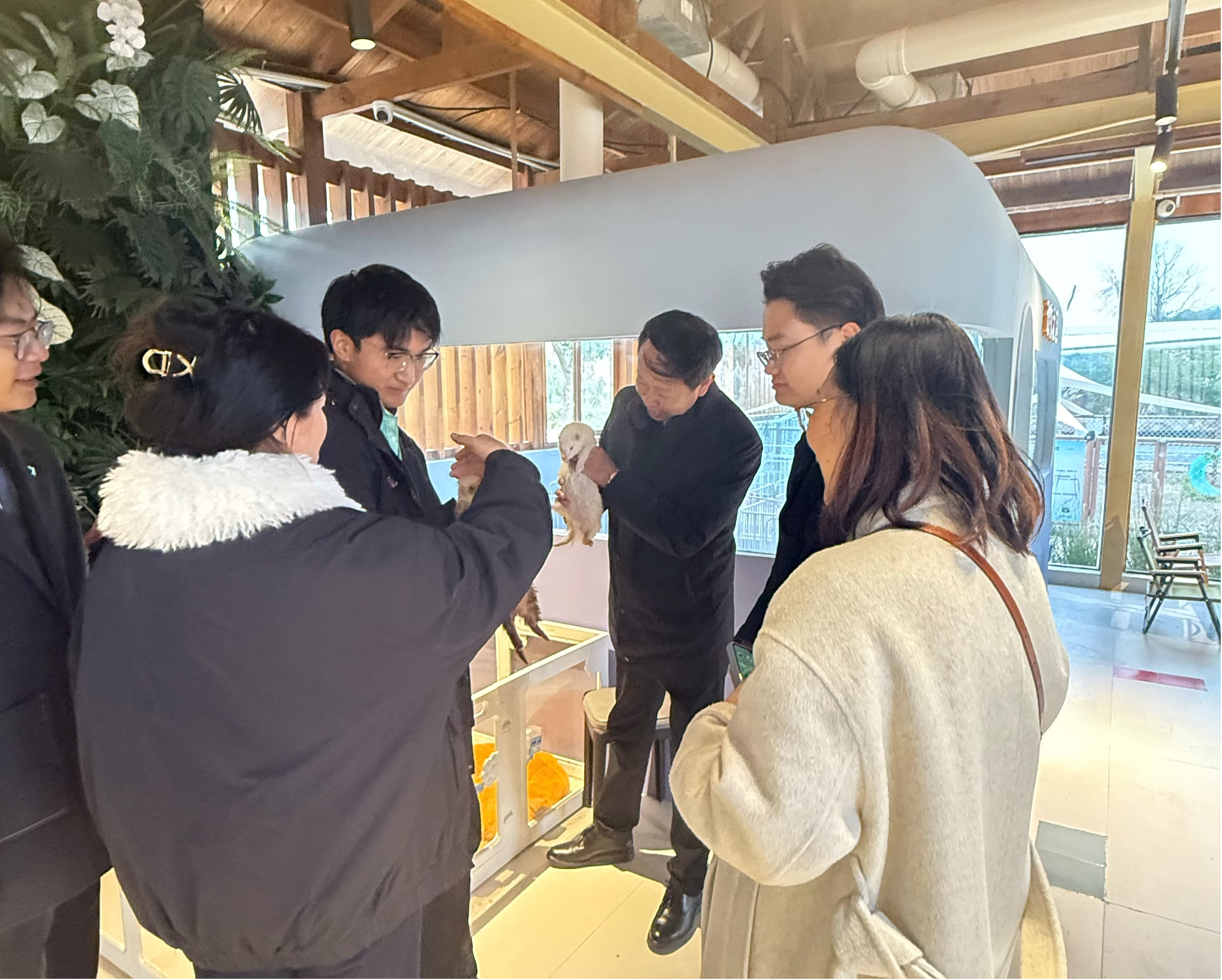 在开元森泊度假乐园总部招聘经理牟绍康及莫干山园区人资总监助理郑文豪的陪同下,校方团队实地参观了园区核心功能区,包括室内水乐园、自然主题客房、多功能性会议厅、亲子互动体验区,详细了解乐园的规划布局、服务流程与岗位设置,并就游客体验优化、特色项目运营等话题展开交流。