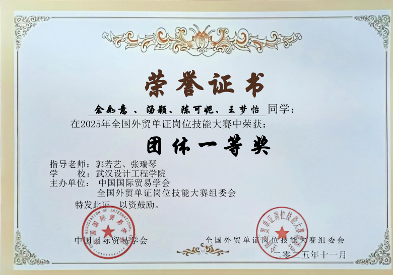 余如意、汤颖、陈可妮、王梦怡获2025年全国外贸单证岗位技能大赛全国总决赛一等奖