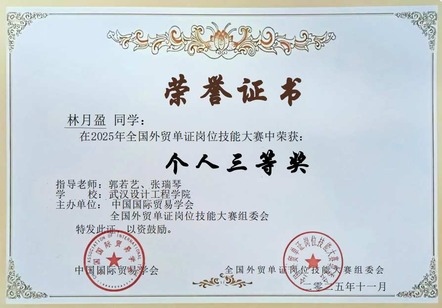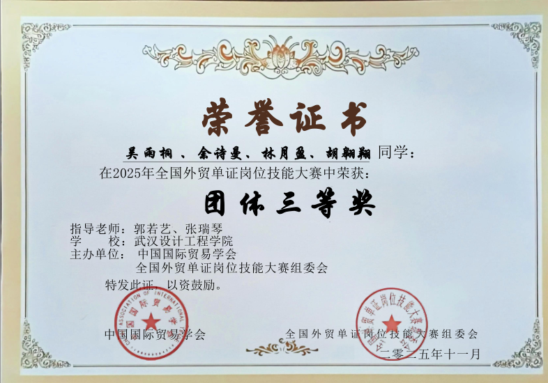 吴雨桐、余诗曼、林月盈、胡翱翔获2025年全国外贸单证岗位技能大赛全国总决赛三等奖